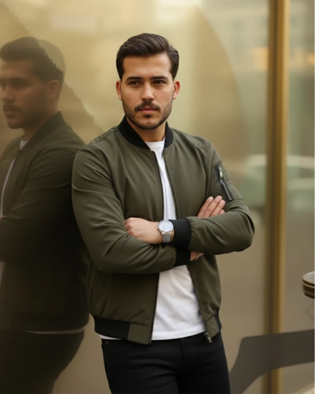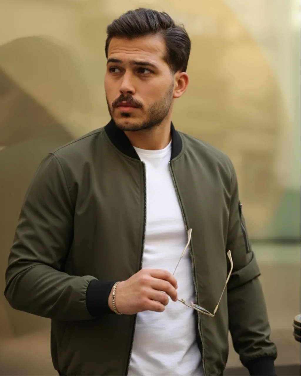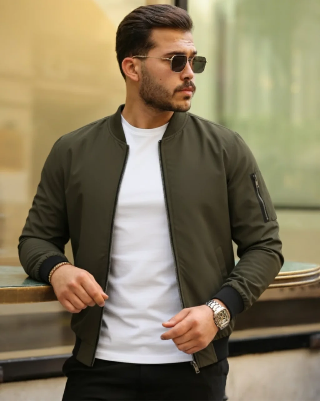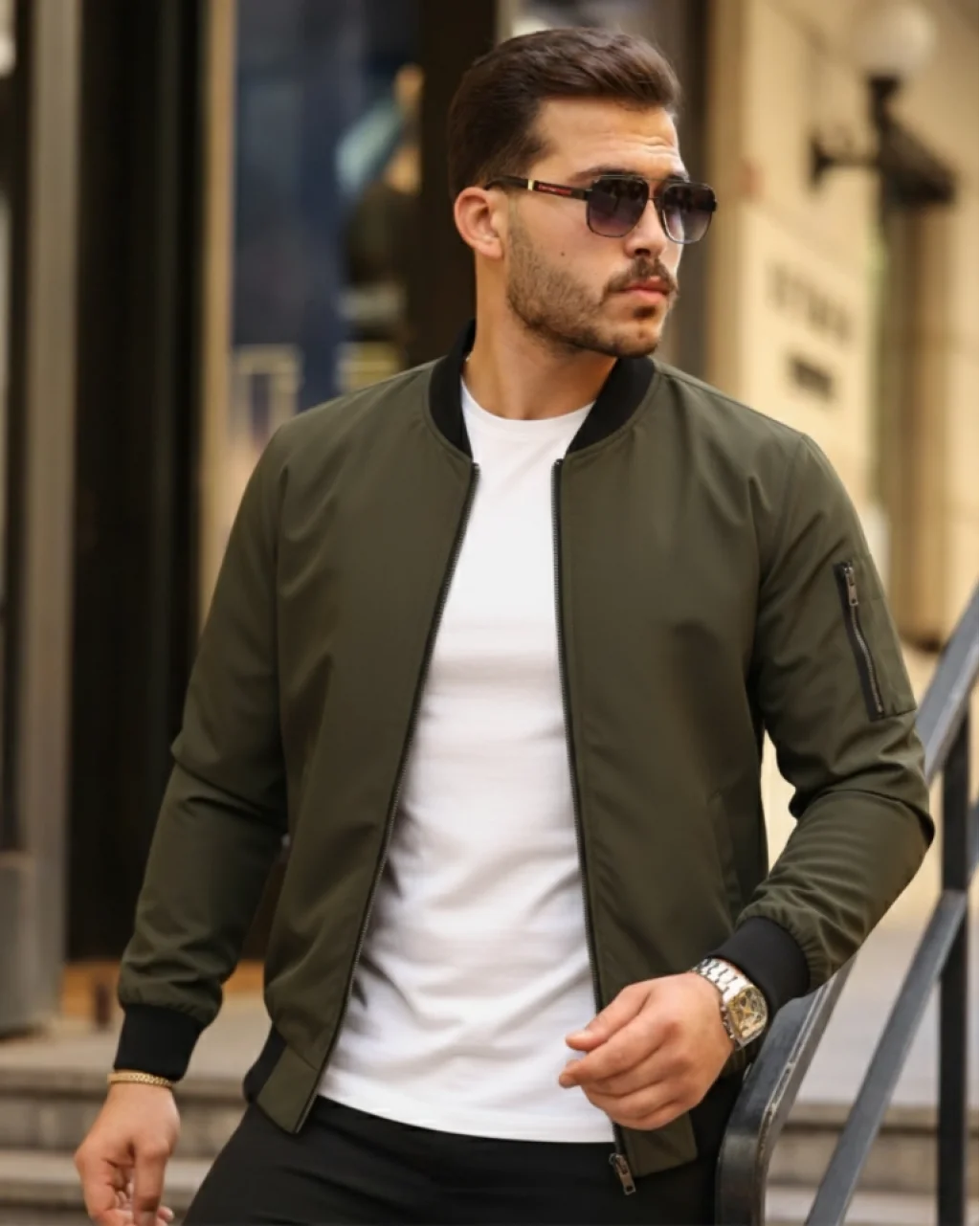 Erkek Içi Astarlı Fermuarlı Bomber Mont Ceket - Haki