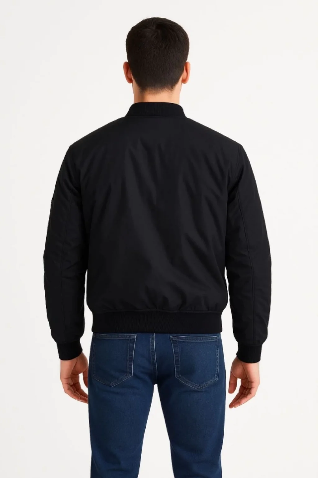 Erkek Içi Astarlı Fermuarlı Bomber Mont Ceket - Siyah