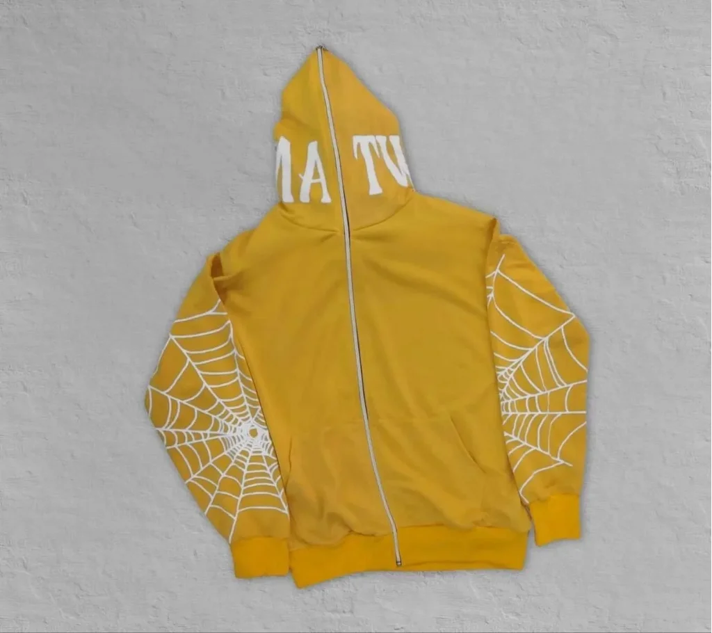 Erkek İki İplik Örümcek Baskılı Oversize Hırka - Sarı