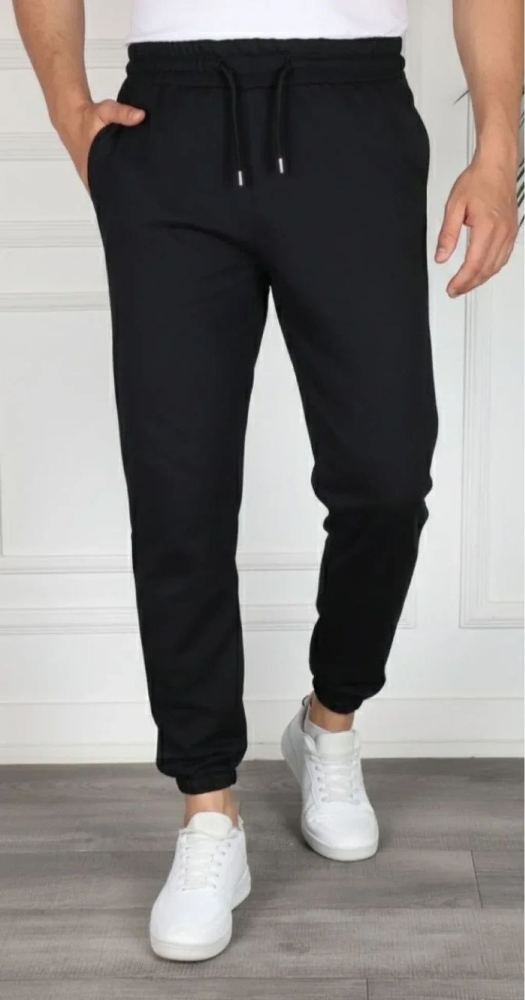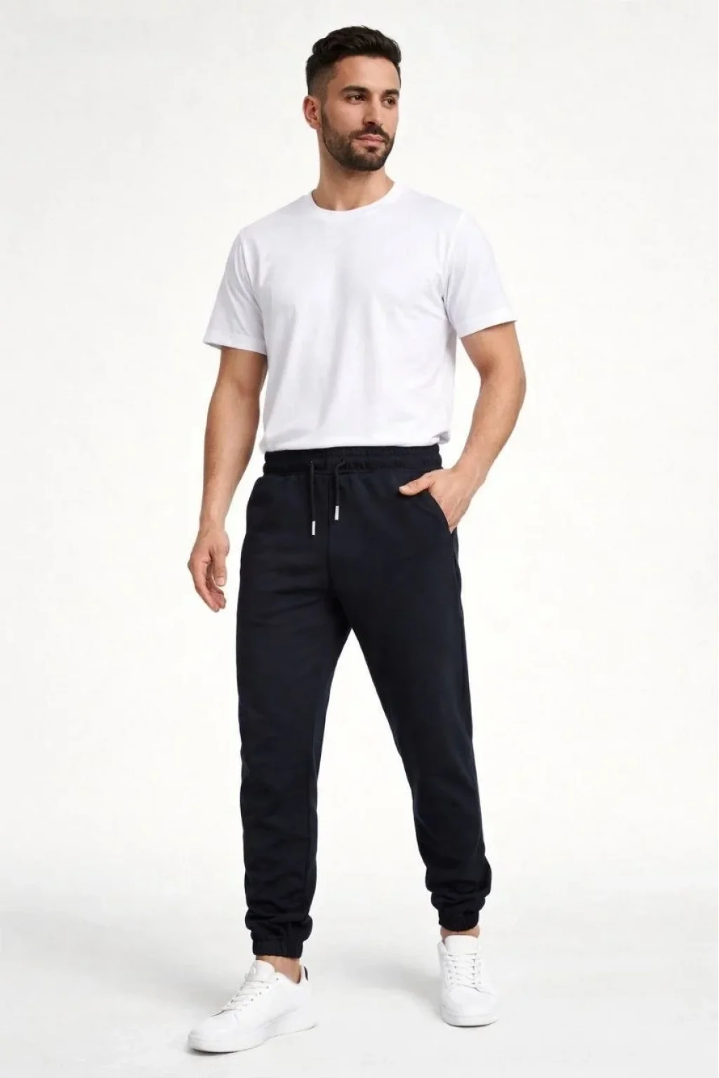 Erkek Jogger Eşofman Altı Rahat Kalıp, Cepli, Lastikli Paça, Günlük Spor Pantolon - Siyah