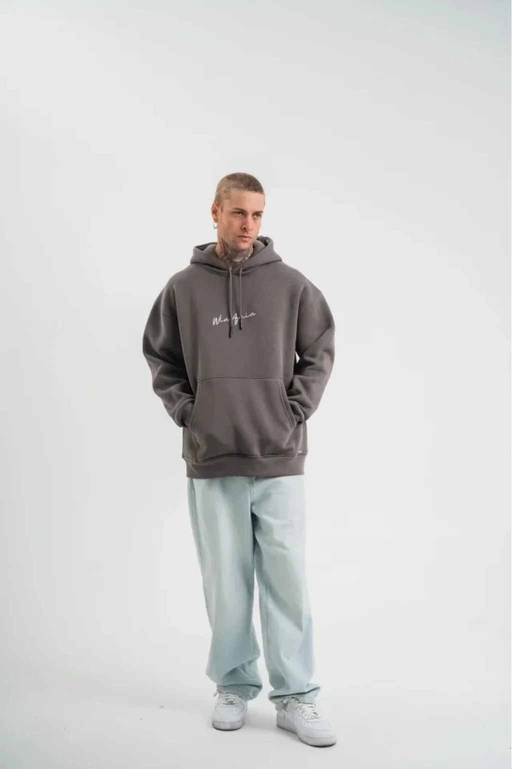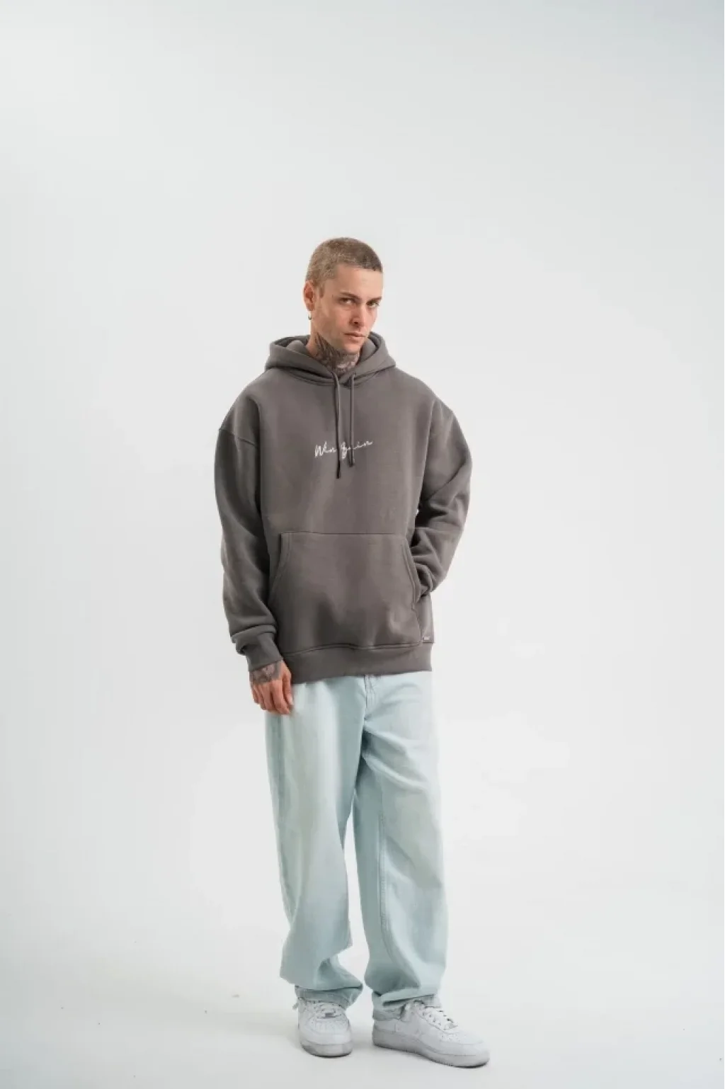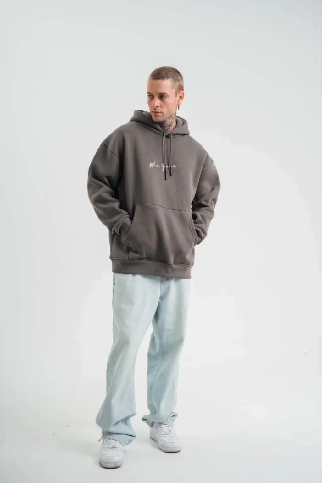 Erkek Kapşonlu Double Oversize Dijital Patchli SweatShirt - Füme