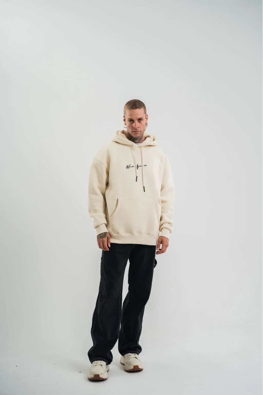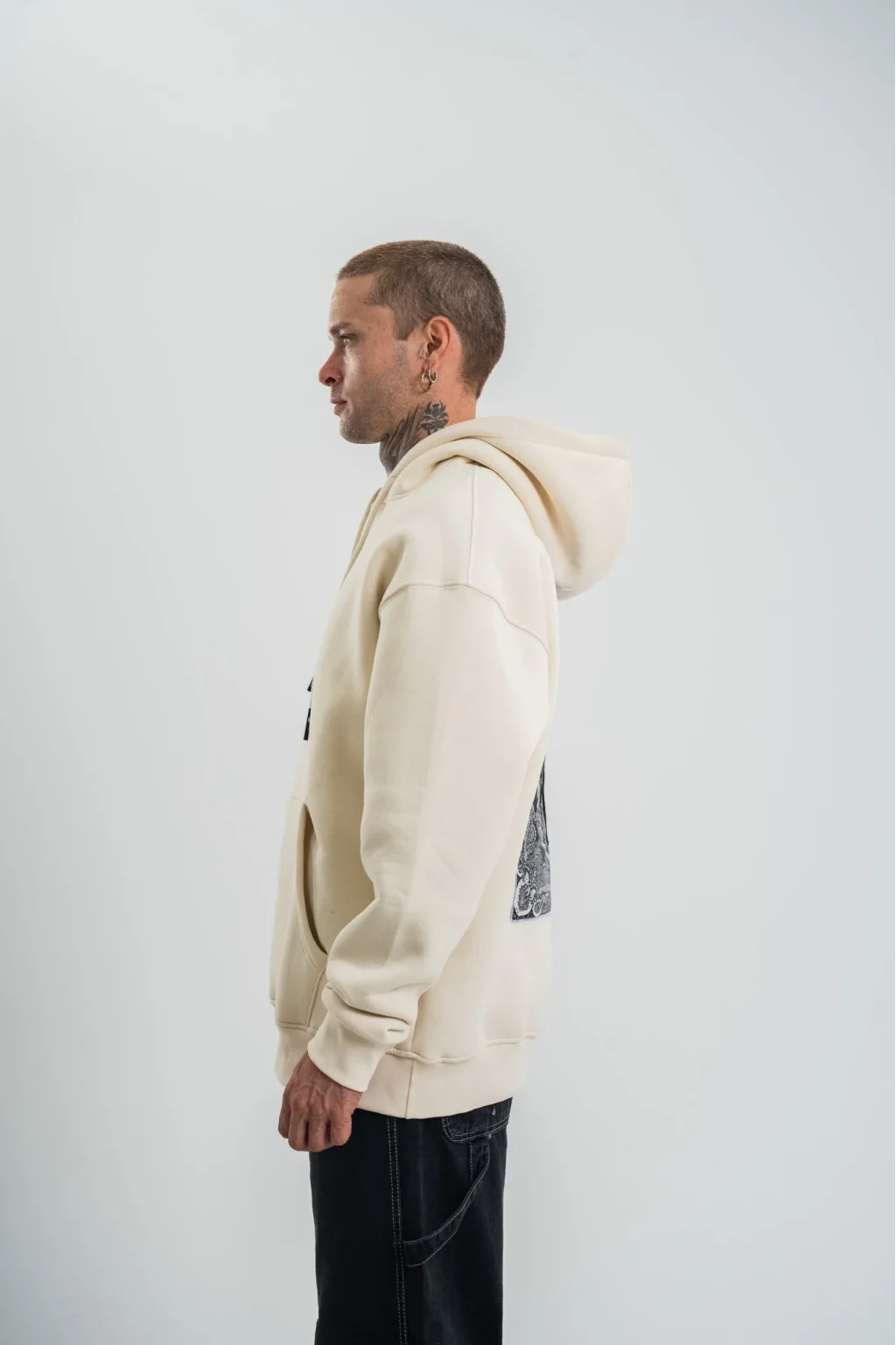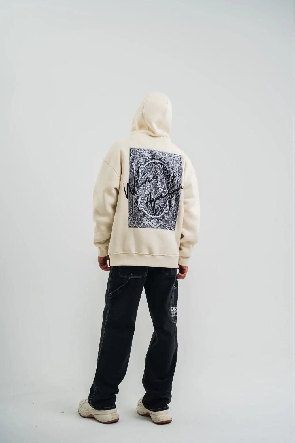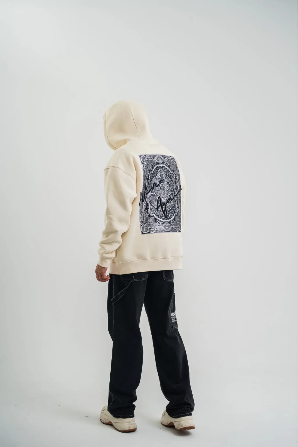 Erkek Kapşonlu Double Oversize Dijital Patchli SweatShirt - Krem