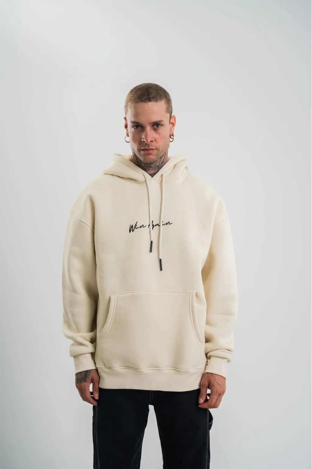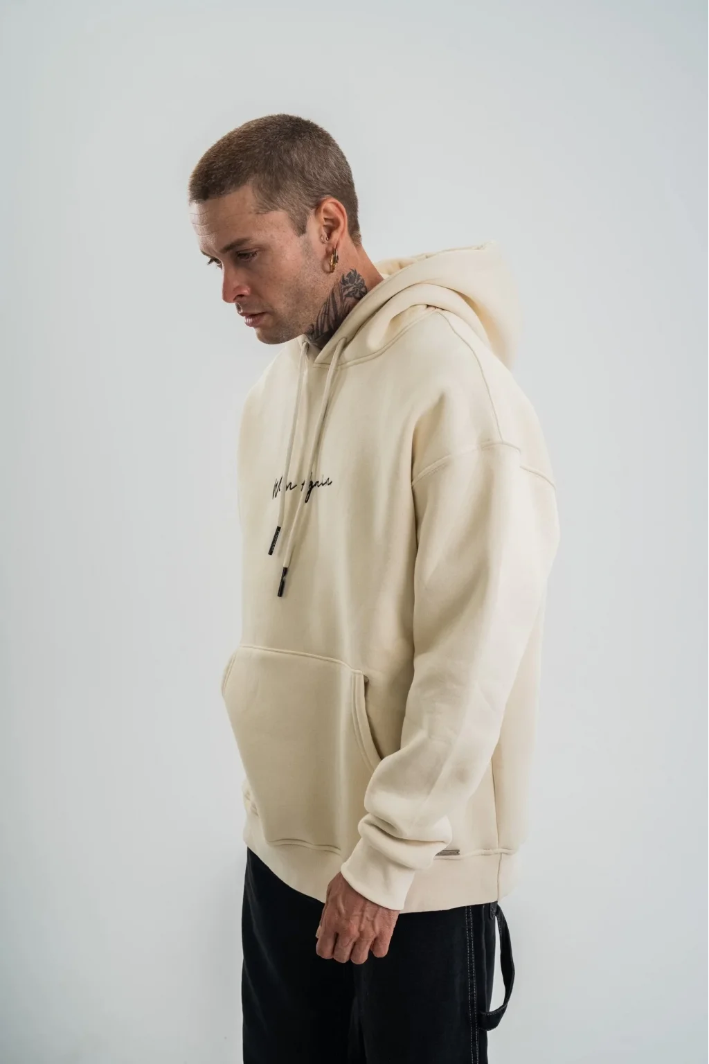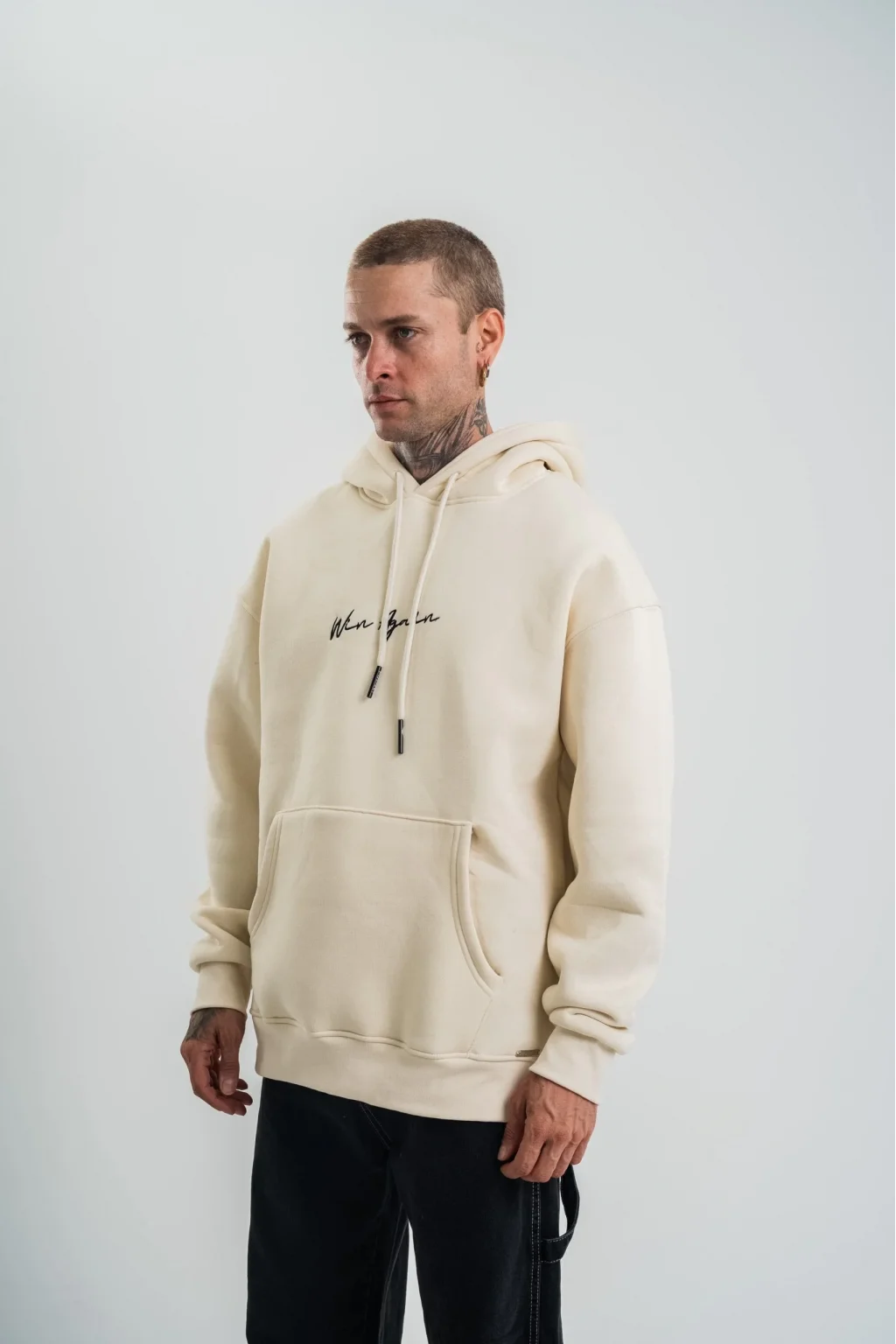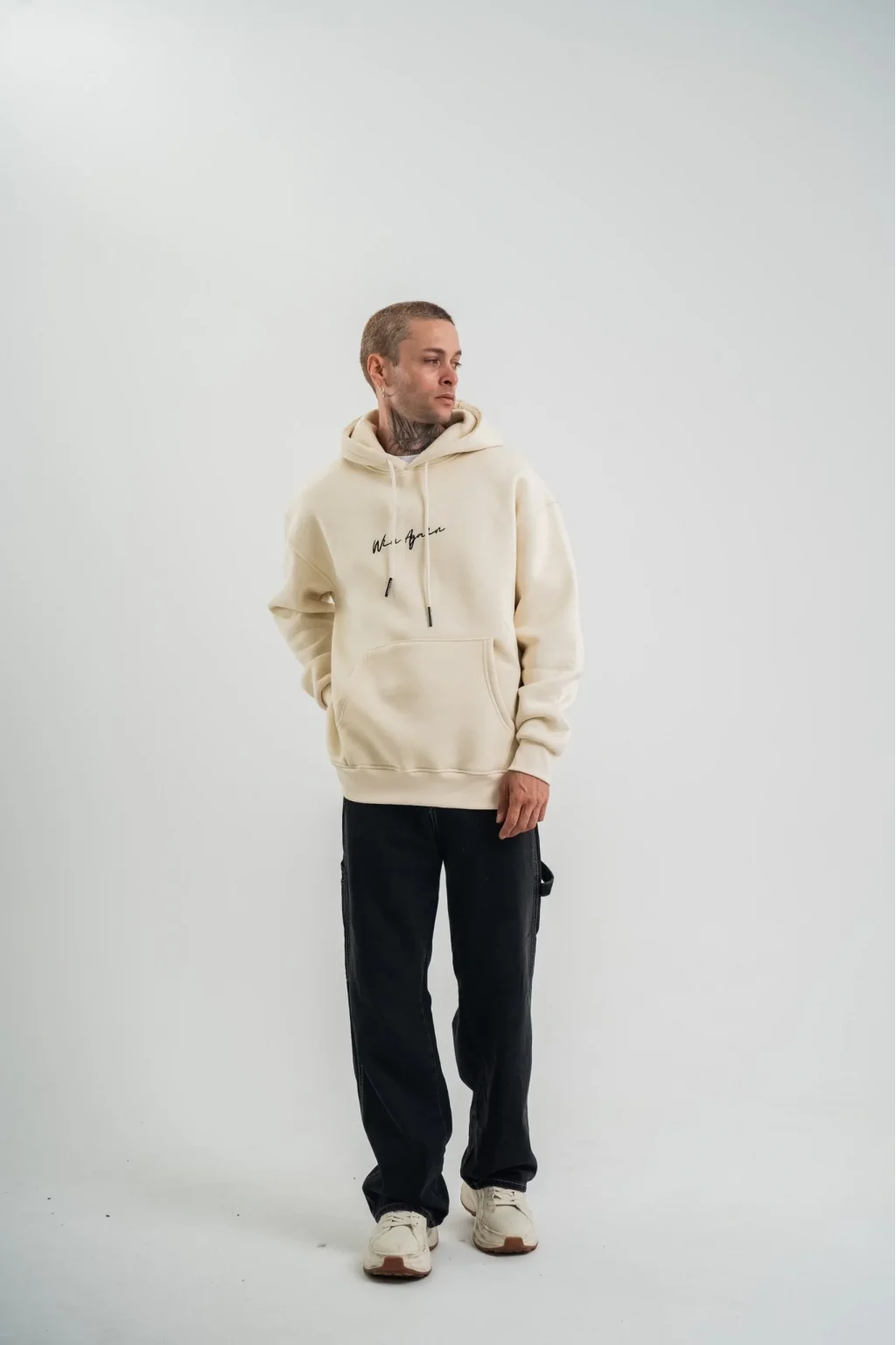 Erkek Kapşonlu Double Oversize Dijital Patchli SweatShirt - Krem