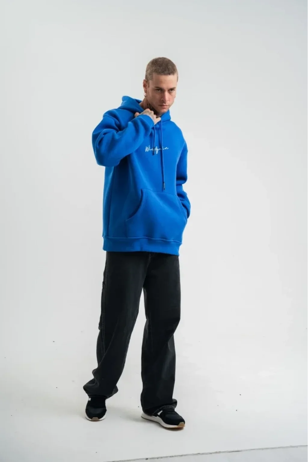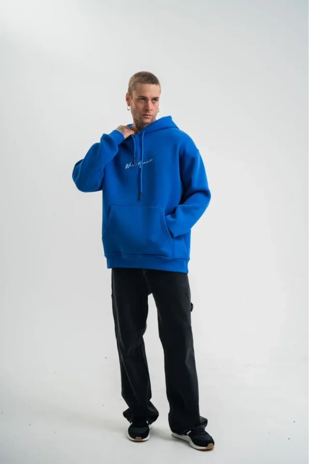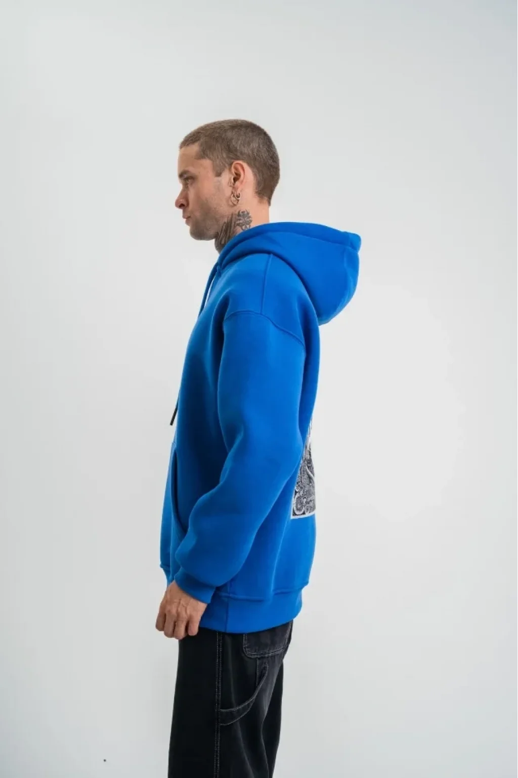 Erkek Kapşonlu Double Oversize Dijital Patchli SweatShirt - Mavi