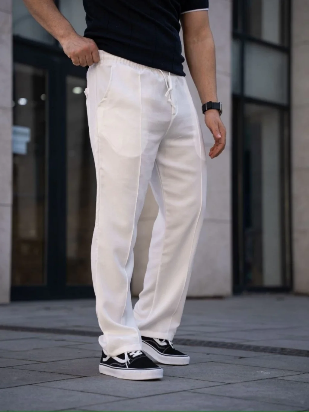 Erkek Keten Cepli Çıma Dikişli Jogger Buggy Pantalon Rahat Kalıp - Beyaz