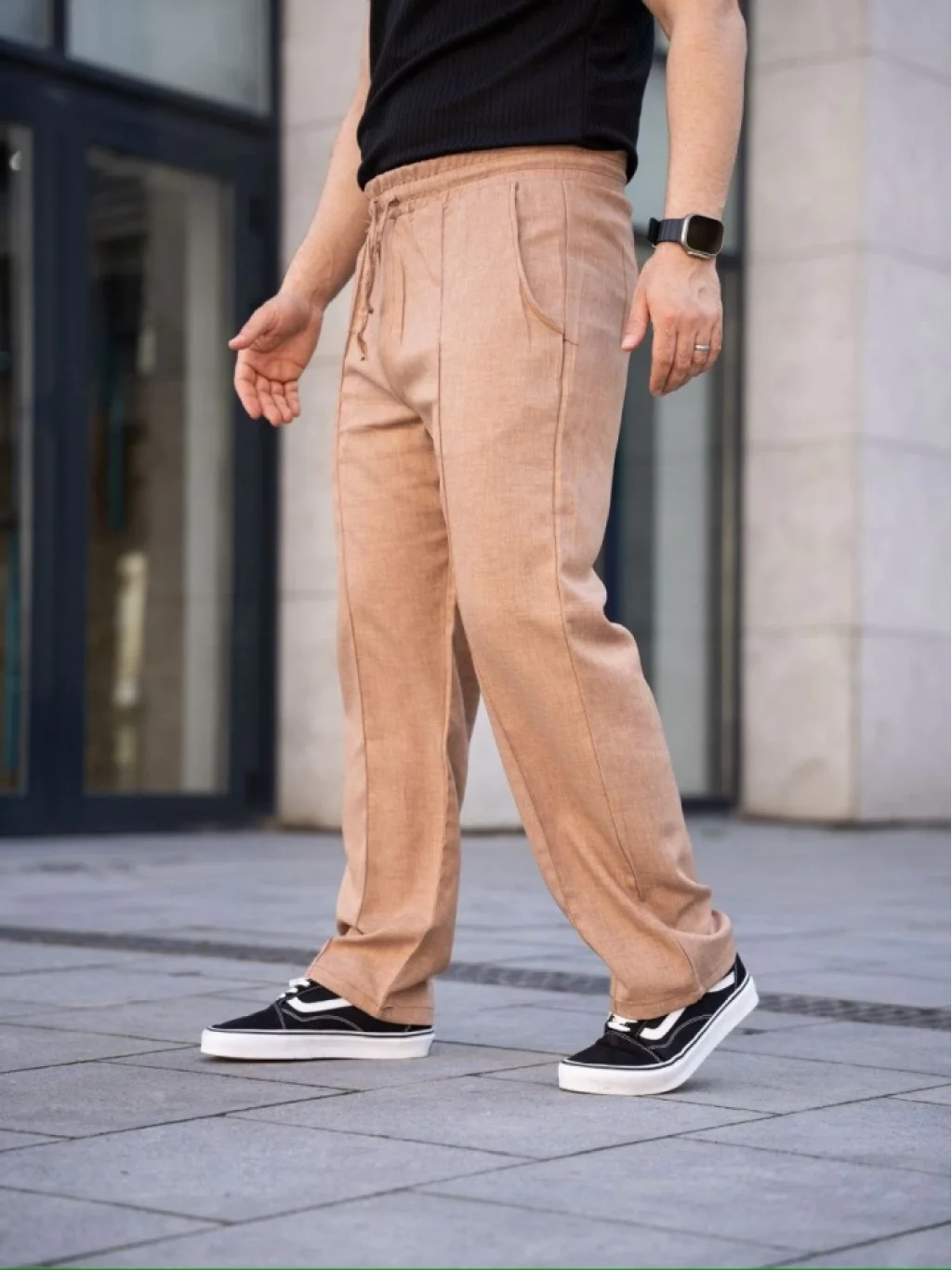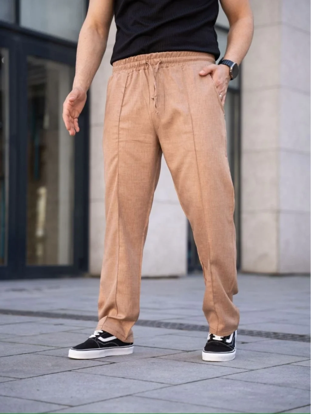 Erkek Keten Cepli Çıma Dikişli Jogger Buggy Pantalon Rahat Kalıp - Kahverengi