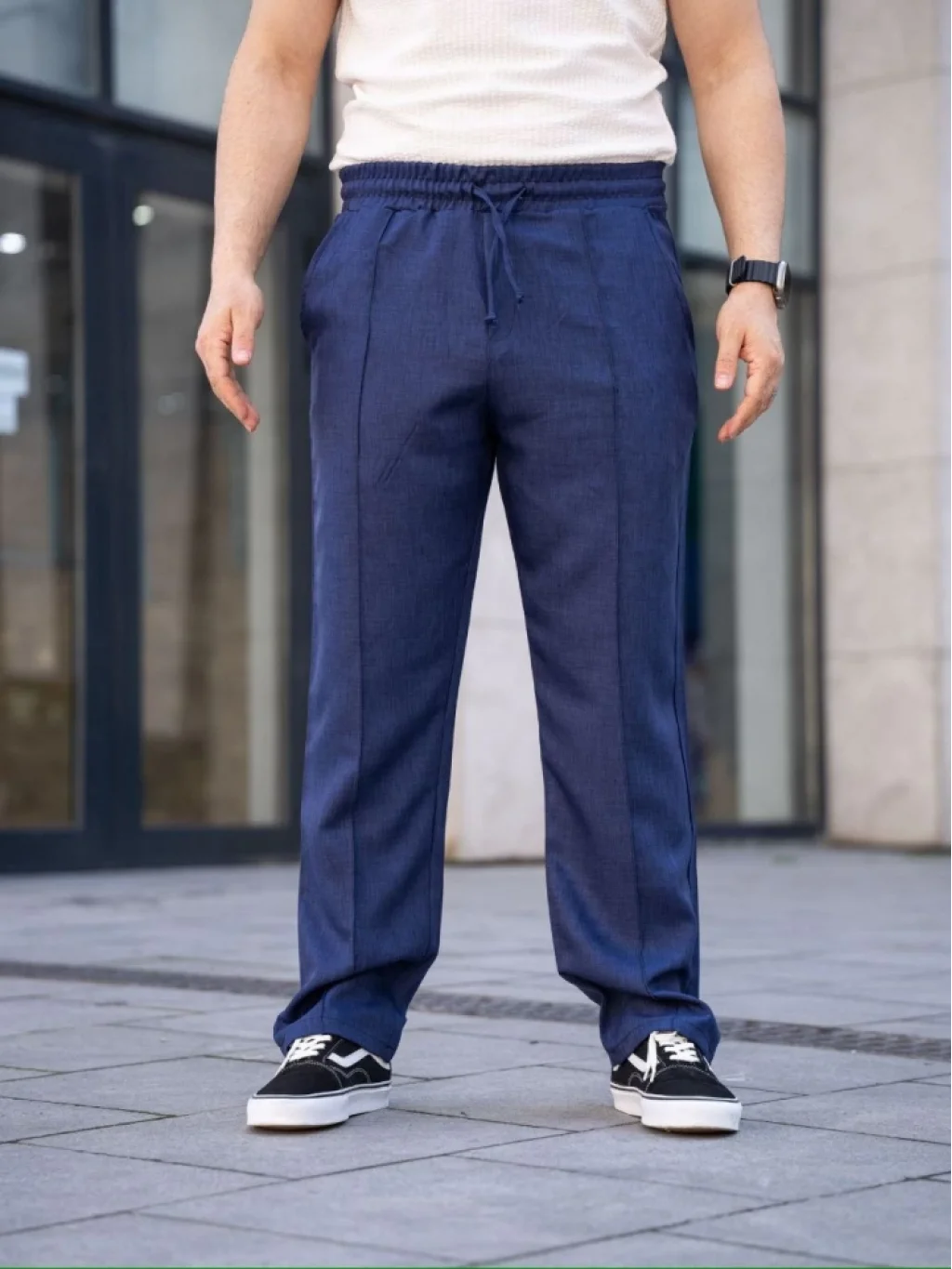 Erkek Keten Cepli Çıma Dikişli Jogger Buggy Pantalon Rahat Kalıp - Lacivert