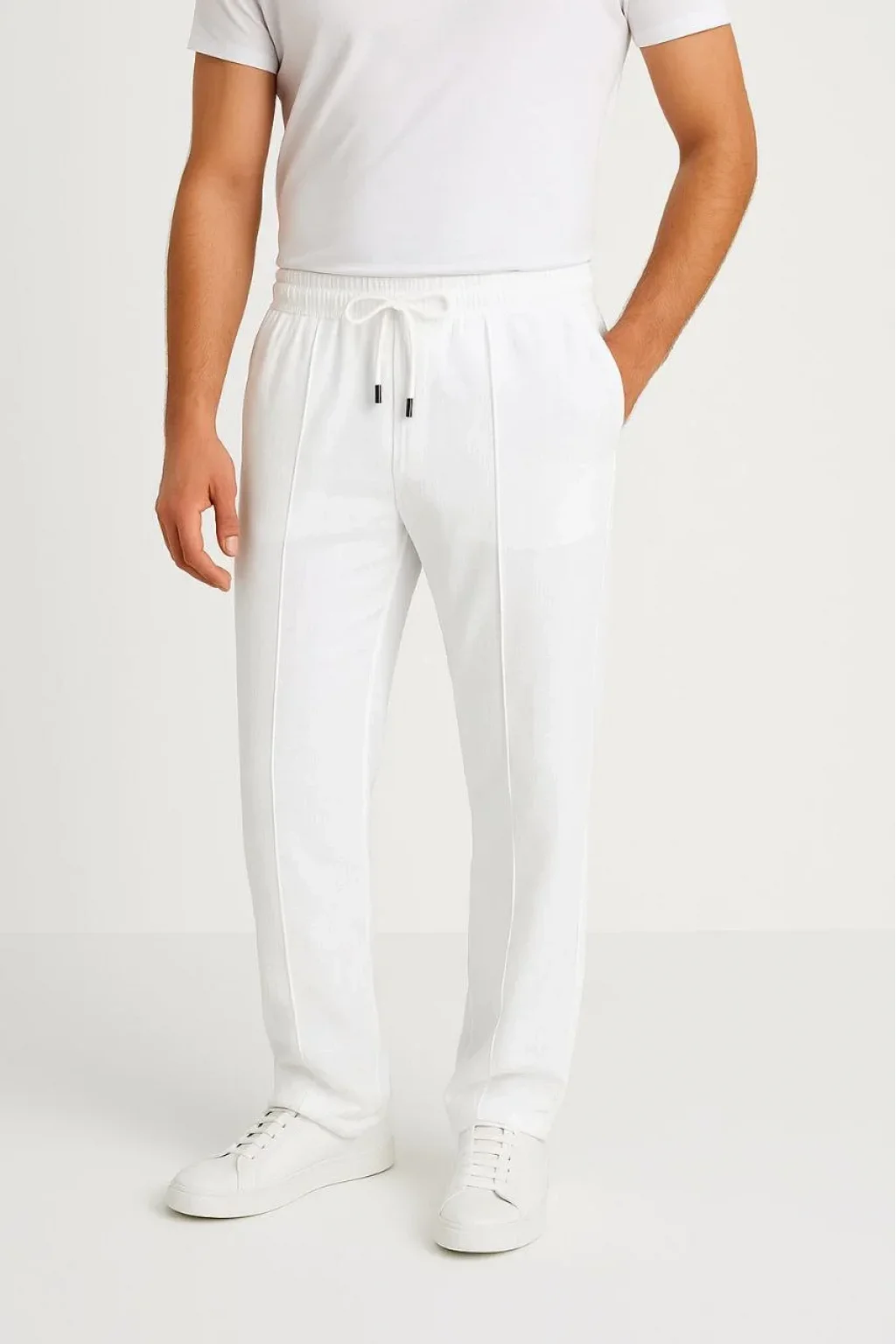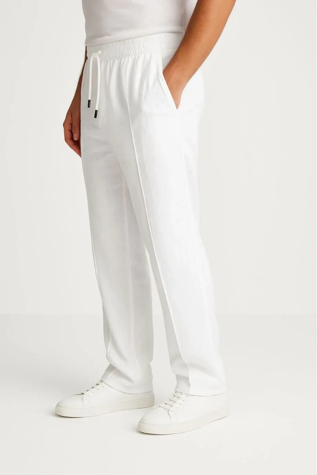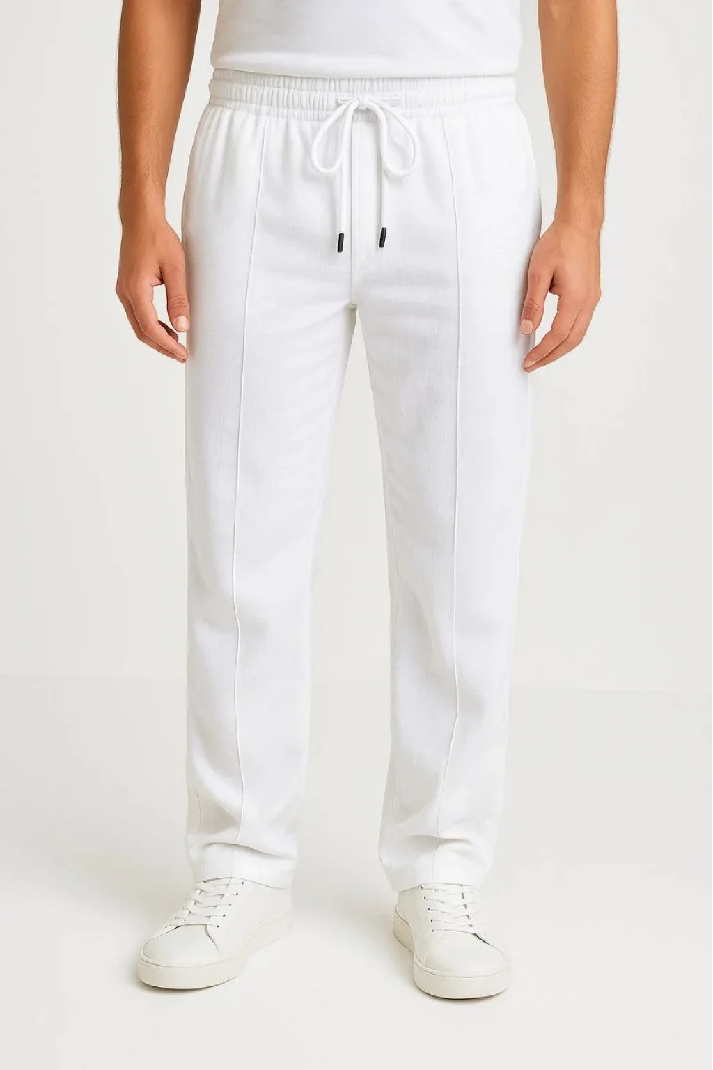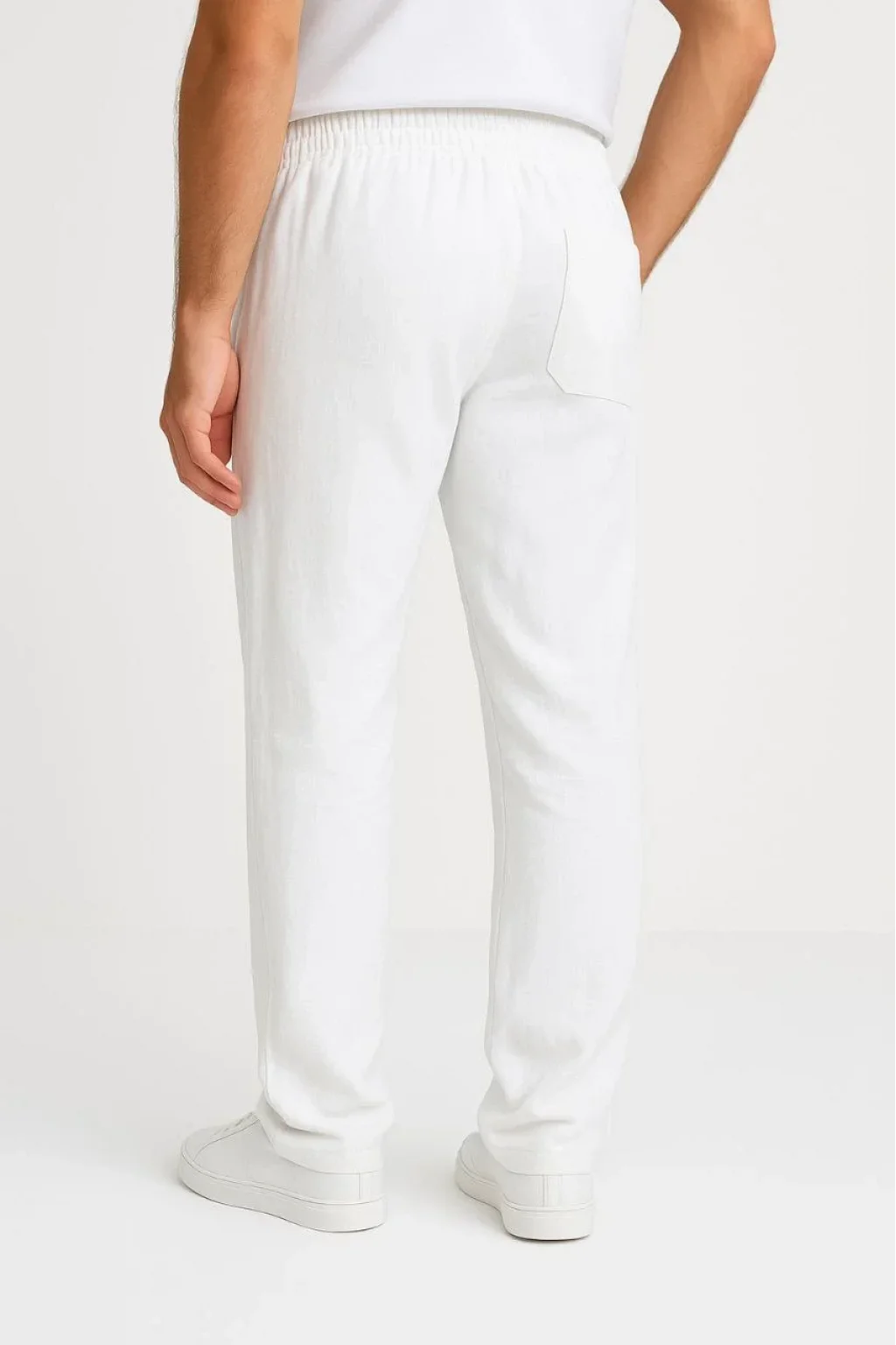 Erkek Keten Pantolon – Cepli, Beli Lastikli ve Bağcıklı, Nefes Alan Rahat Kalıp, Yazlık ve Baharlık Günlük Giyim, Şık & Konforlu Boru Paça Model - Beyaz