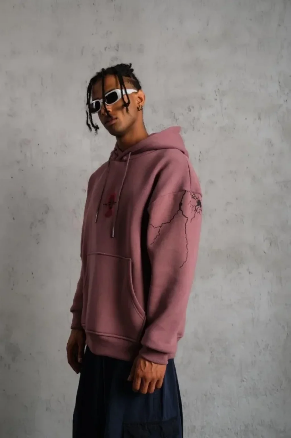 Erkek Maske Baskılı Kapüşonlu Sweat - Gül Kurusu
