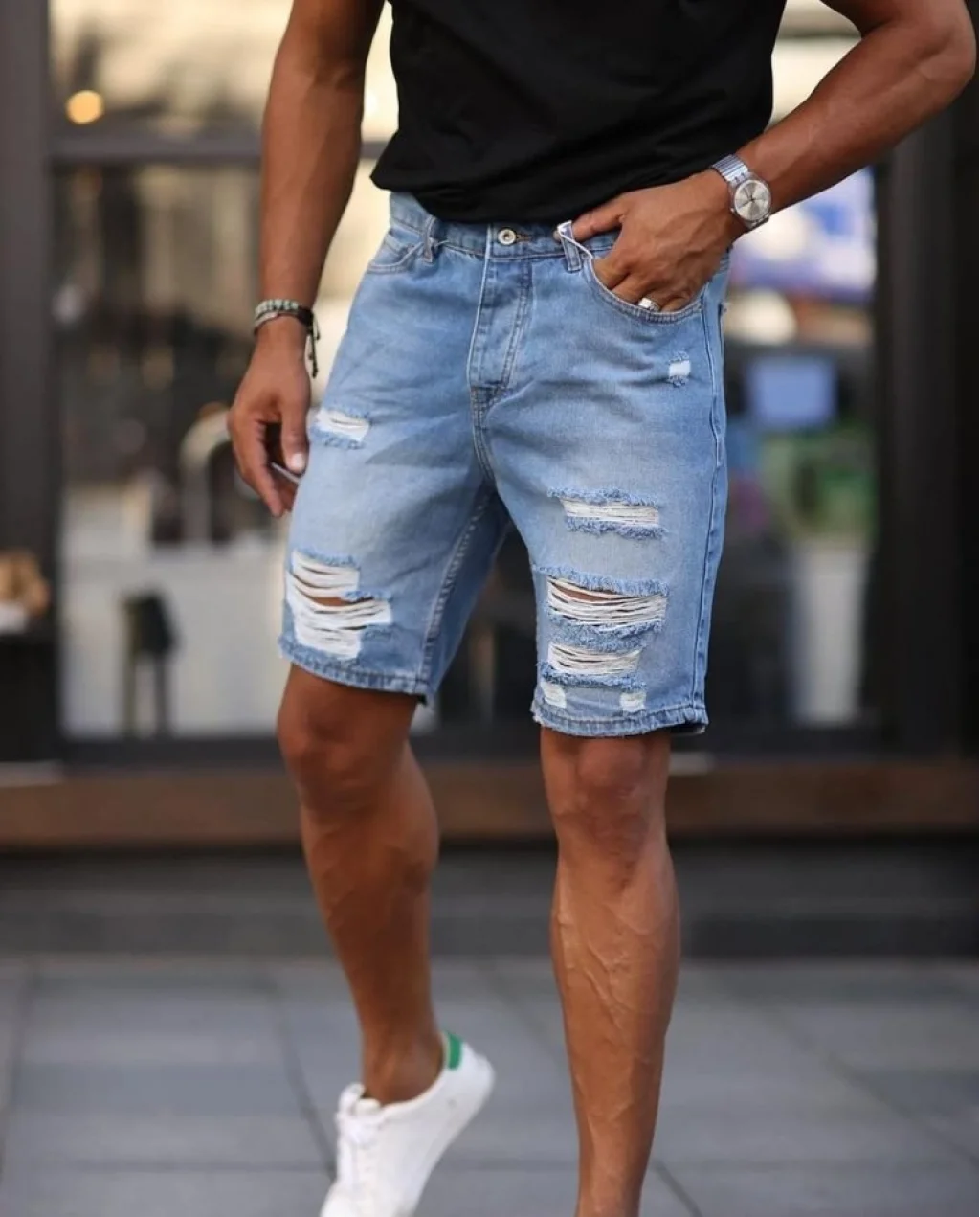 Erkek Mavi Boyfriend Detaylı Şort