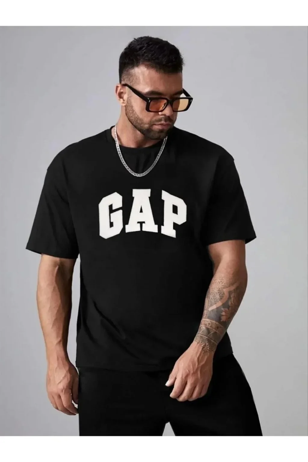 • Erkek Nakışlı Oversize T-shirt - Siyah
