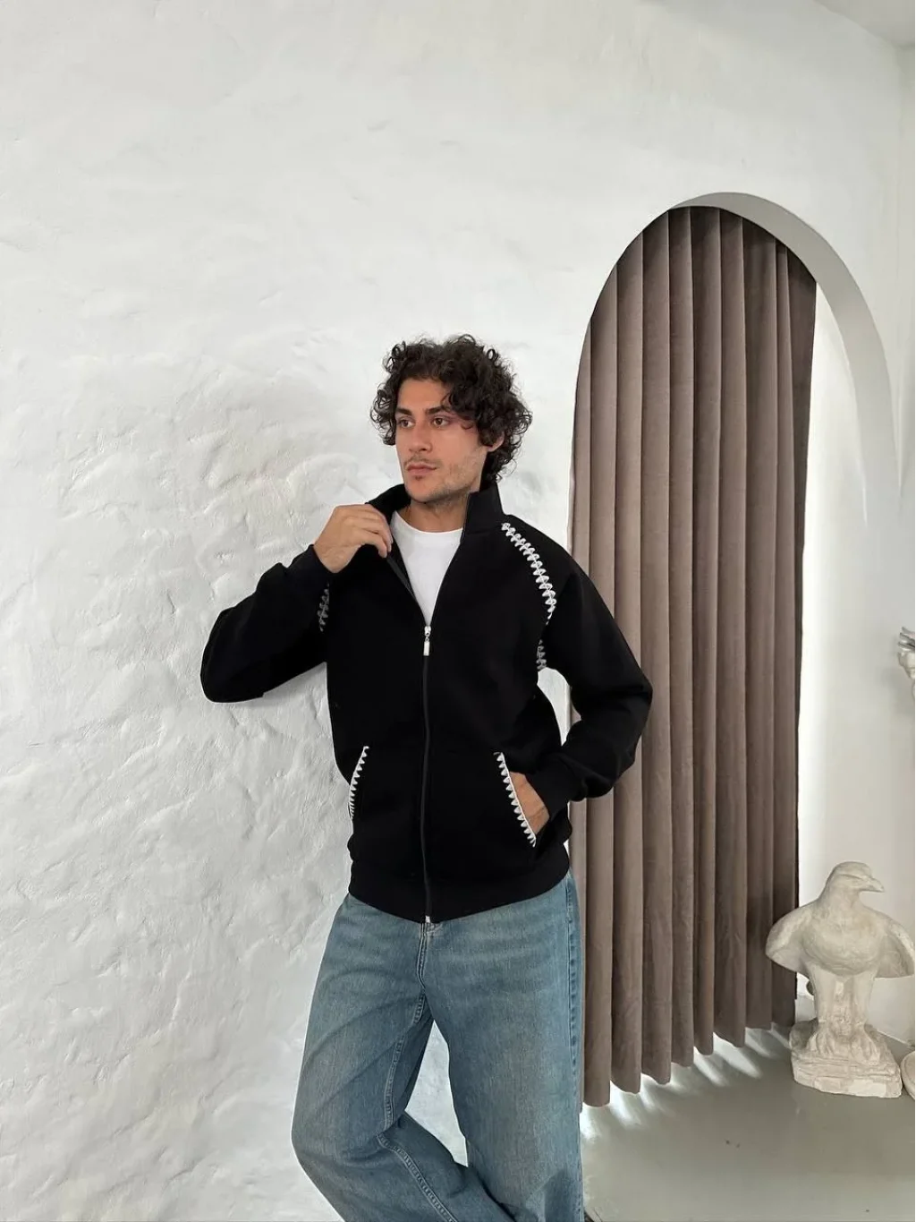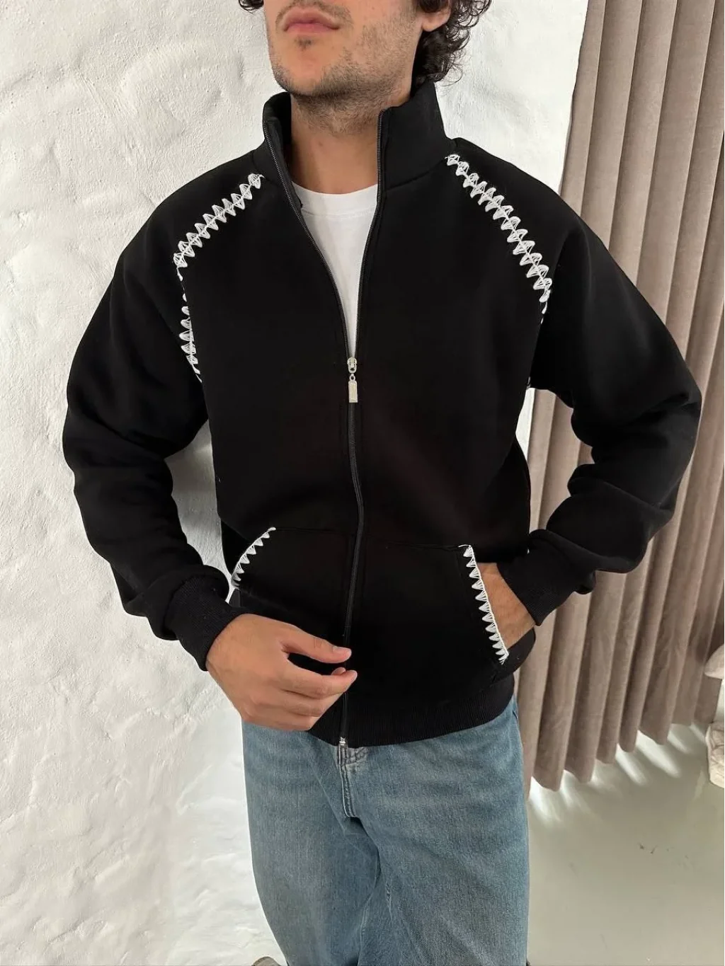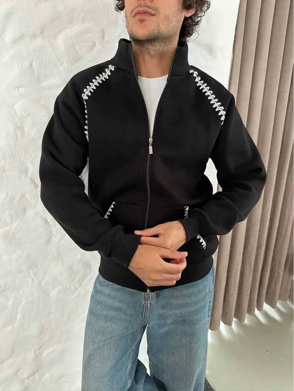 Detaykanguru cepli , Kol,Etek Ribana , Nakışlı , Tam Fermuarlı , Uzun Kollu