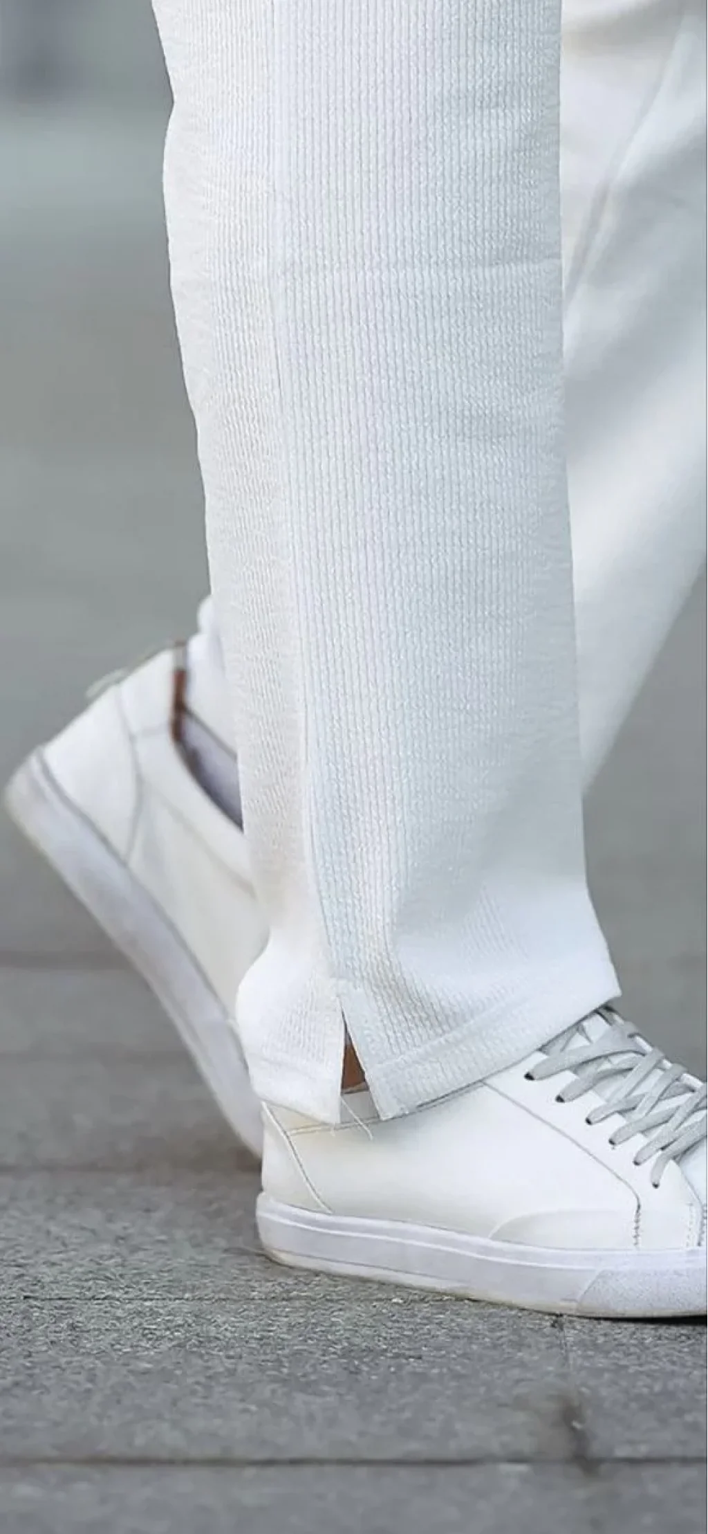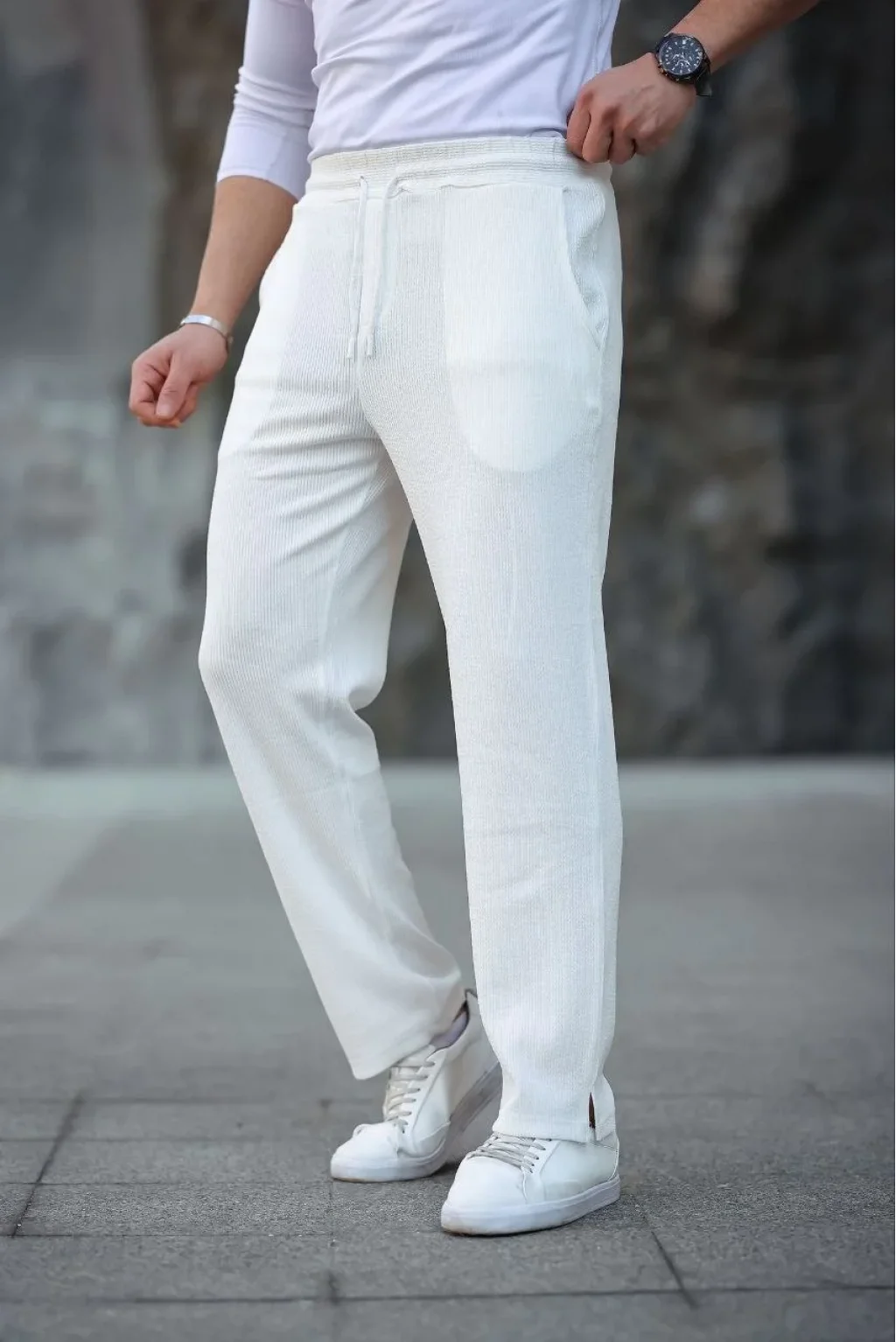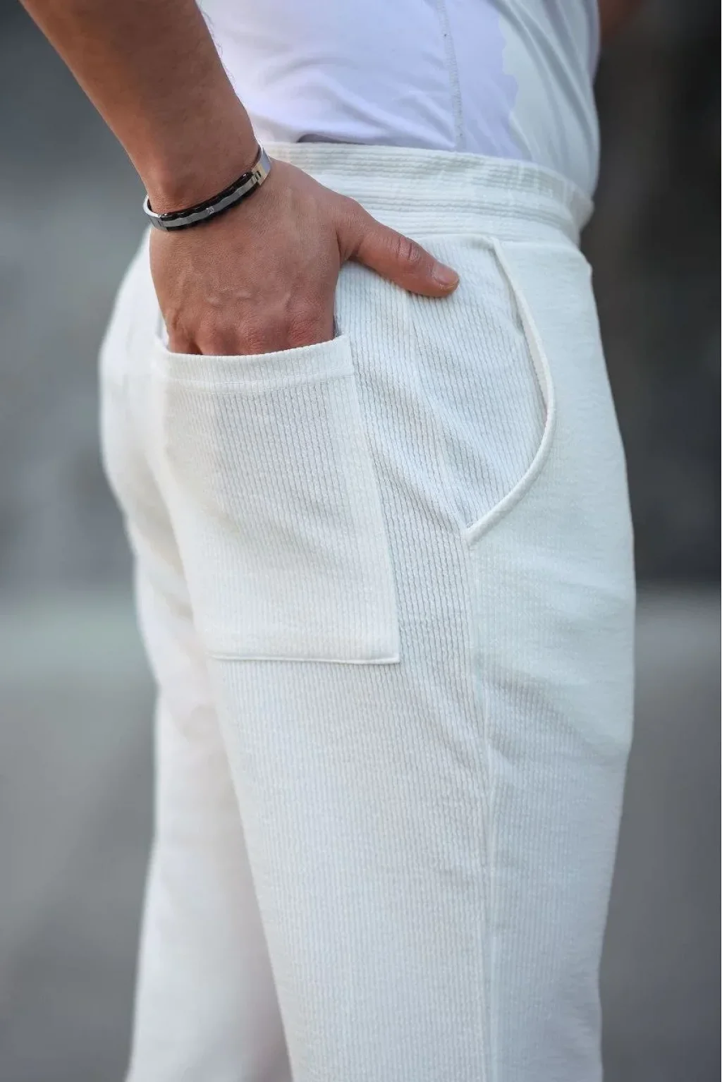 Erkek Paça Yırtmaçlı Burgu selanik dokulu Jogger Buggy Pantalon Rahat kalıp - Beyaz