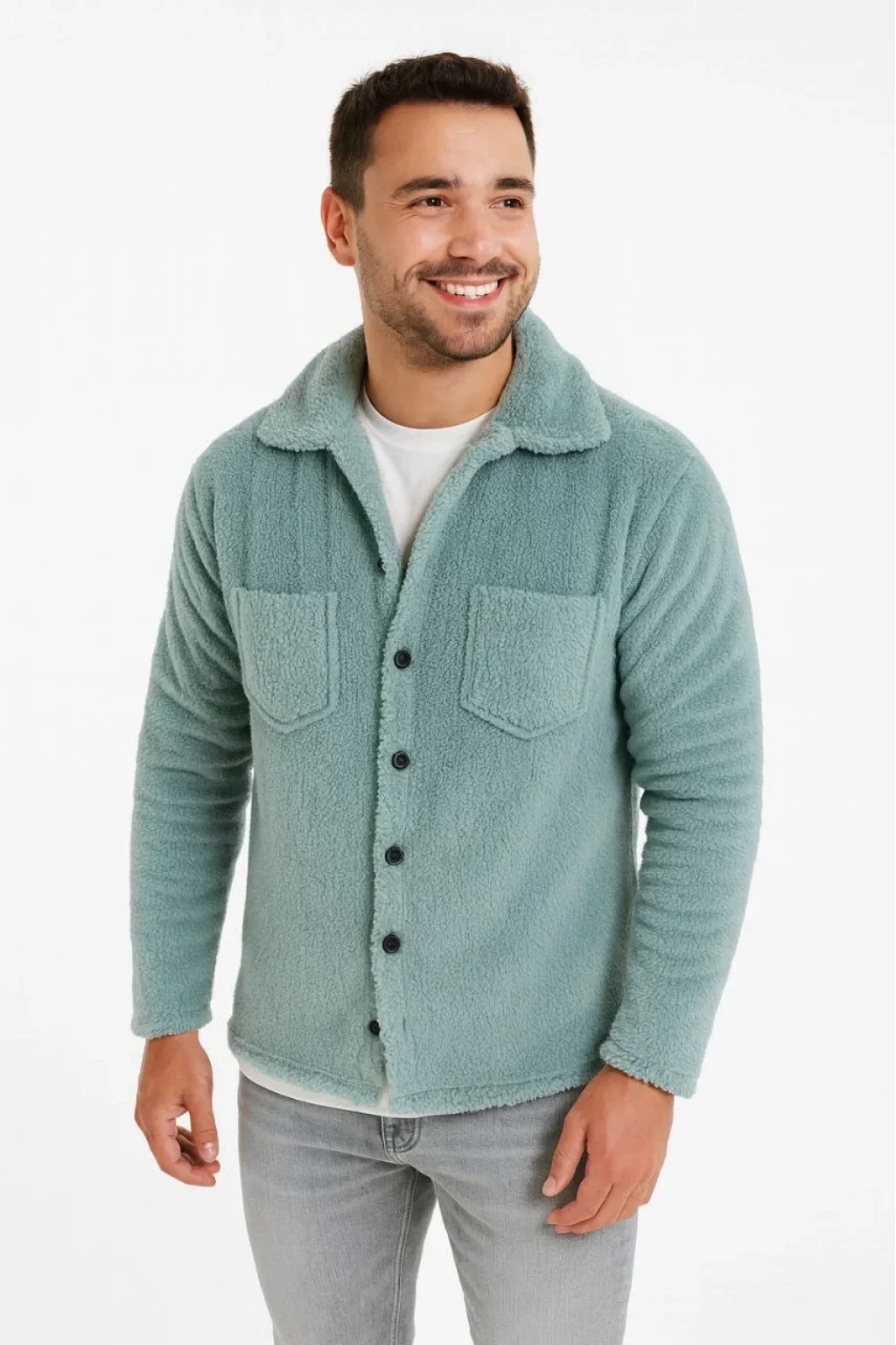 Erkek Pelüş Polar Hırka Gömlek – Yakalı, İlik Düğmeli, Göğüs Cepli, Yumuşak Dokulu Kışlık Regular Fit Rahat Günlük Model - Bebe Mavisi