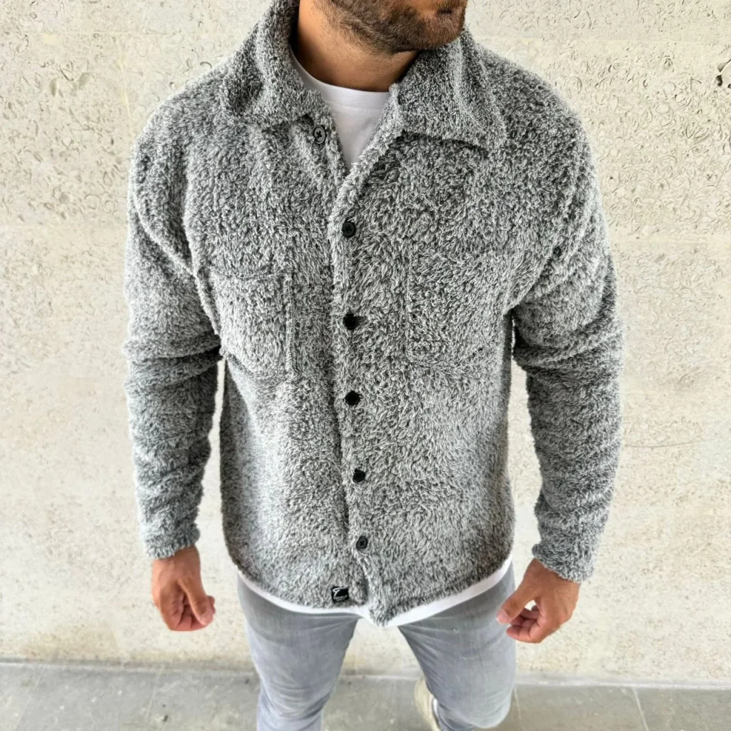 Erkek Pelüş Polar Hırka Gömlek – Yakalı, İlik Düğmeli, Göğüs Cepli, Yumuşak Dokulu Kışlık Regular Fit Rahat Günlük Model - Gri