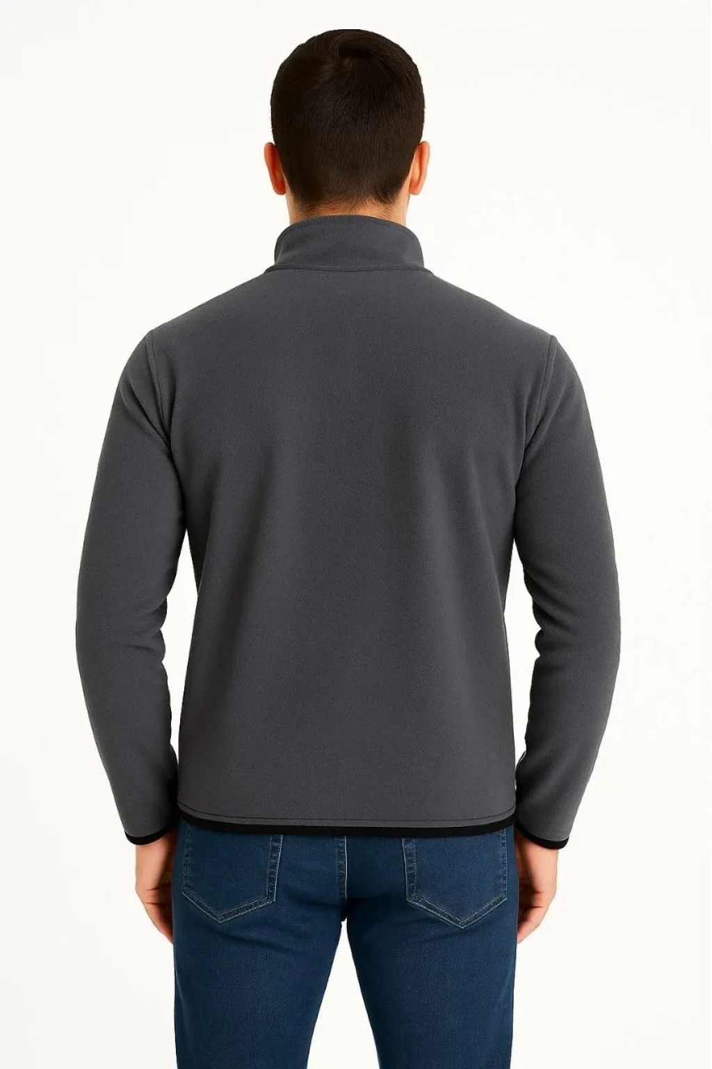 Erkek Polar Kazak – Dik Yaka, Yarım Fermuarlı, Fermuarlı Göğüs Cepli, Siyah Biyeli, Kışlık Rahat Regular Fit Günlük Model - Füme