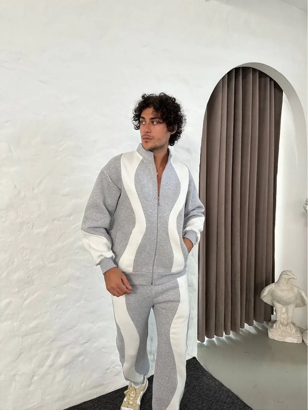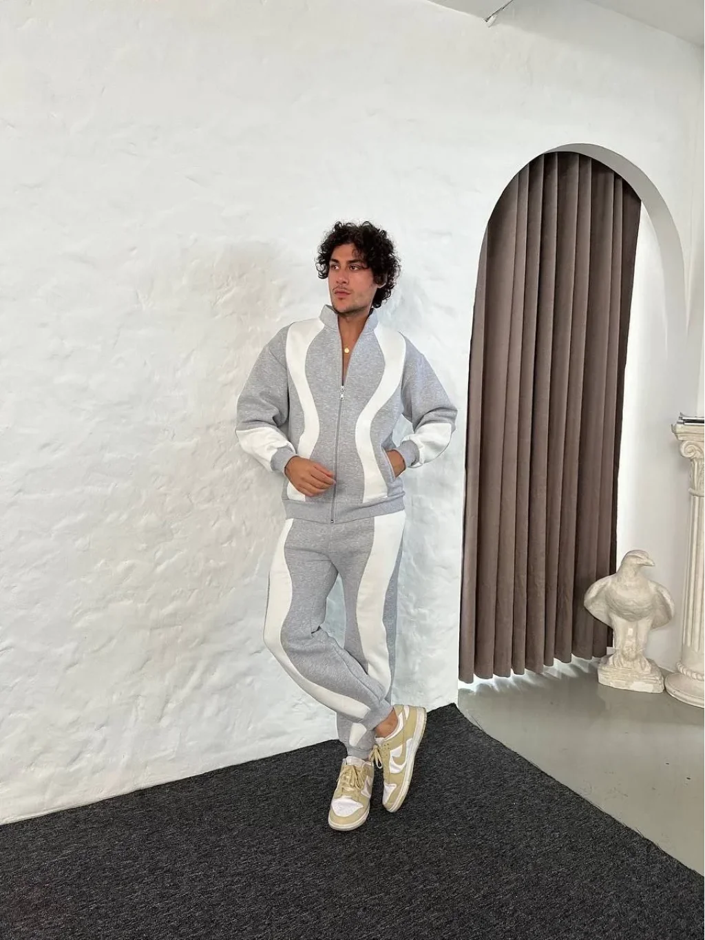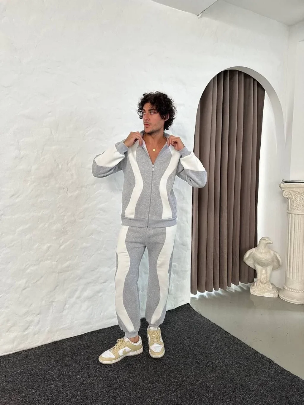 Erkek Premium Parçalı Eşofman Takım - Dik Yaka Fermuarlı Sweatshirt, - Gri