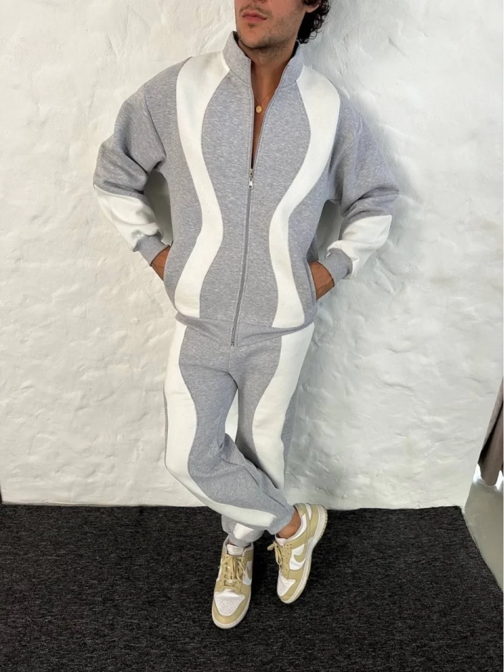Erkek Premium Parçalı Eşofman Takım - Dik Yaka Fermuarlı Sweatshirt, - Gri