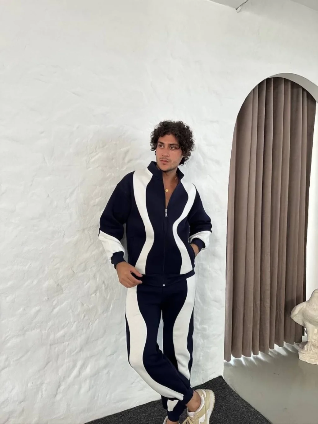 Erkek Premium Parçalı Eşofman Takım - Dik Yaka Fermuarlı Sweatshirt, - Siyah
