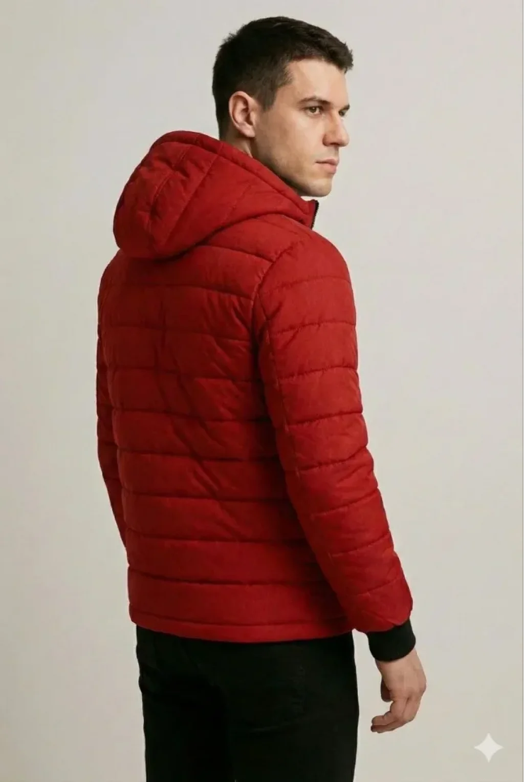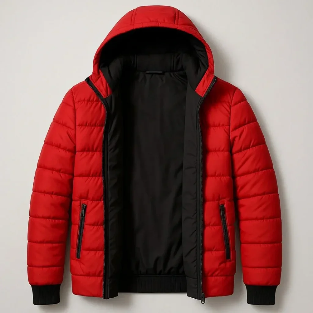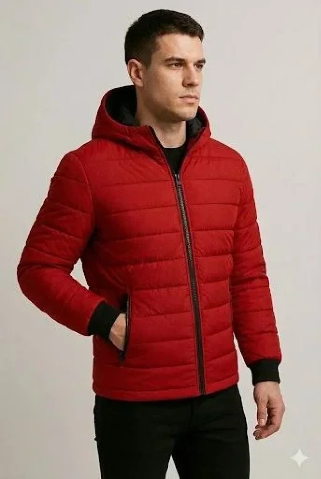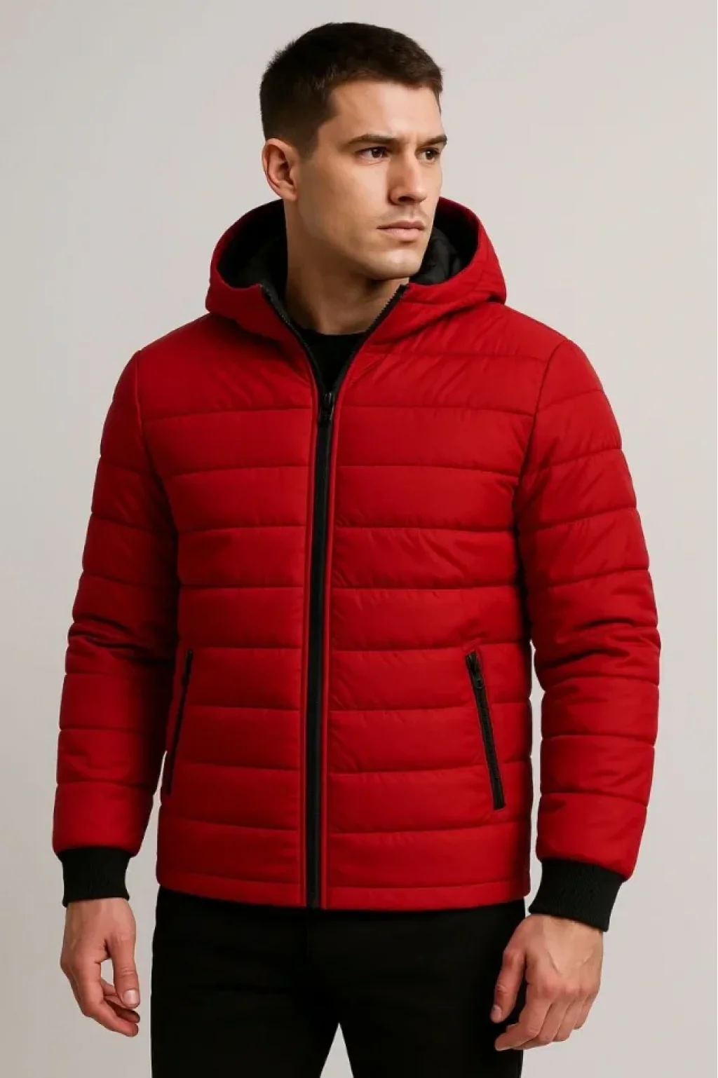 Erkek Şişme Kapüşonlu Fermuarlı Mont Su Itici Kapitone Astarlı Kumaş Cepli Kışlık Rahat Kalıp - Kırmızı