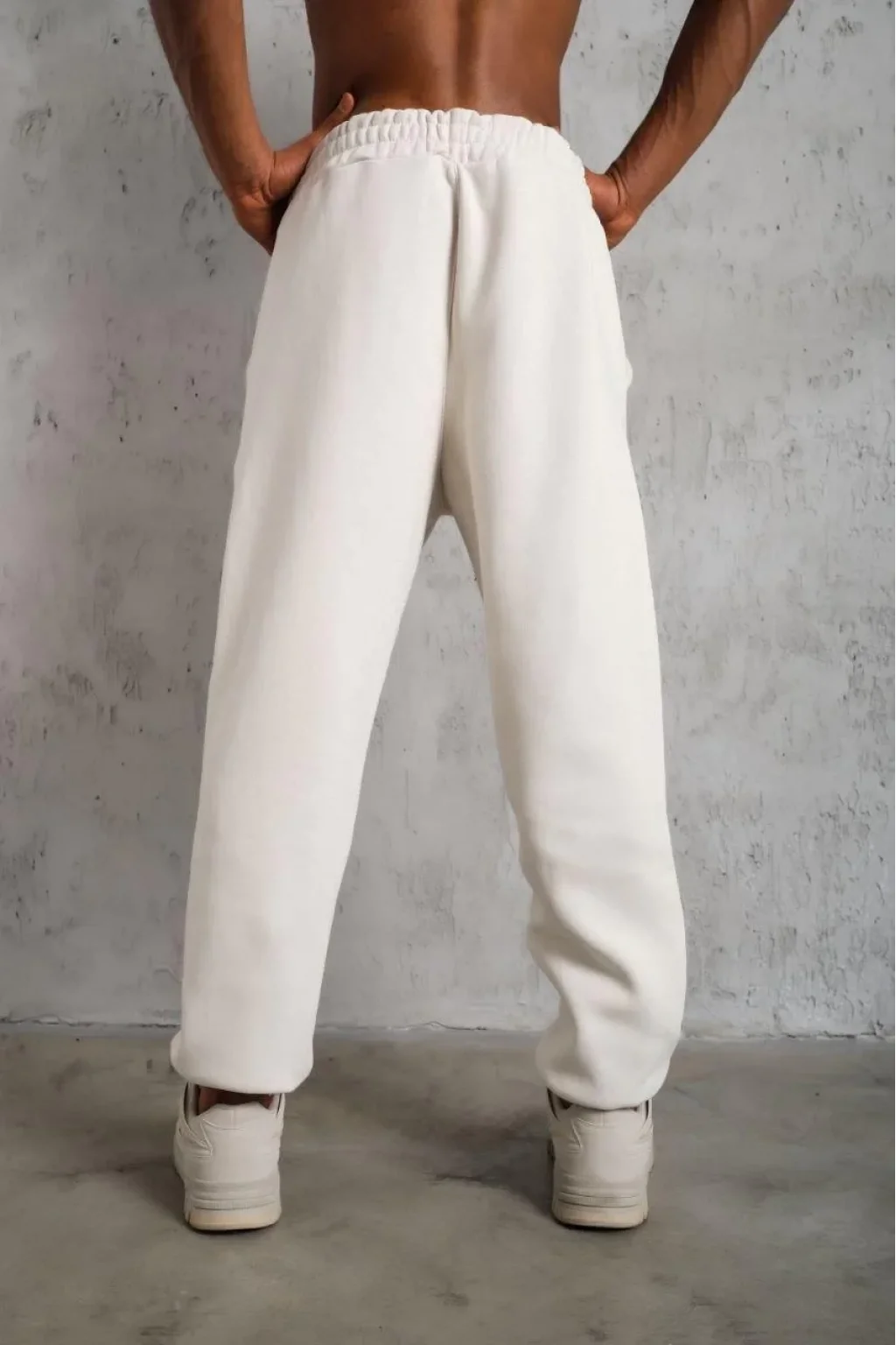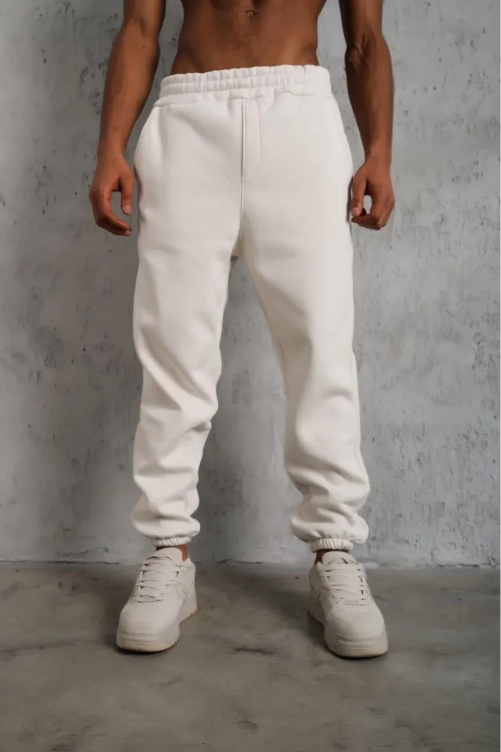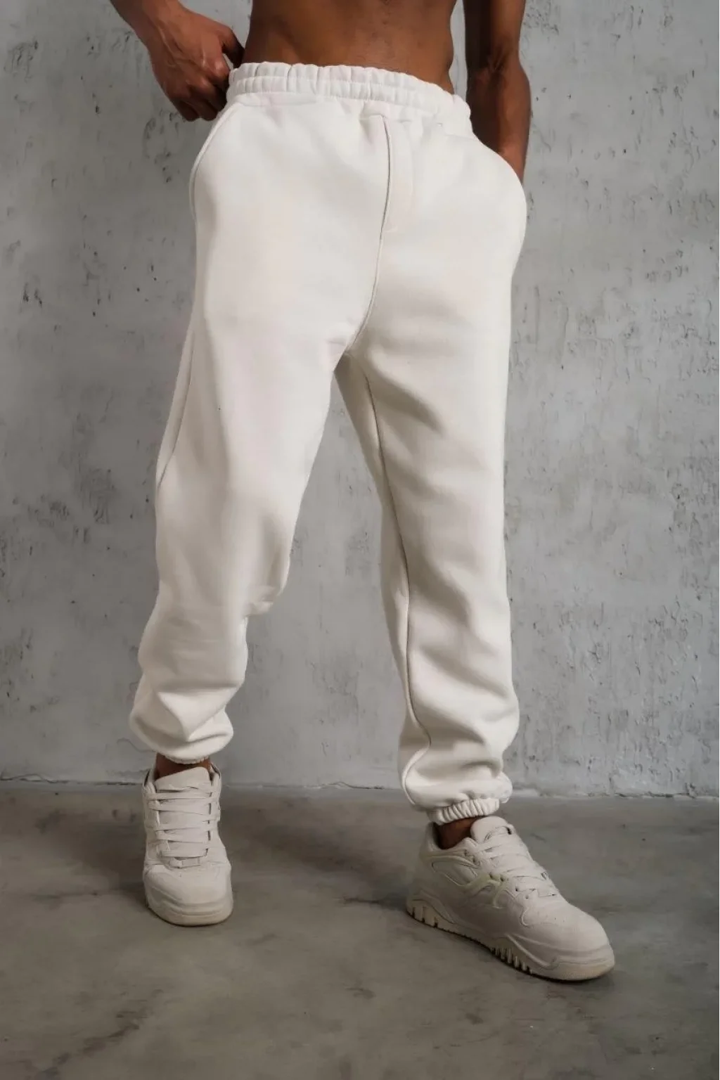 Erkek Üç İplik Alt Eşofman Lastikli - Beyaz