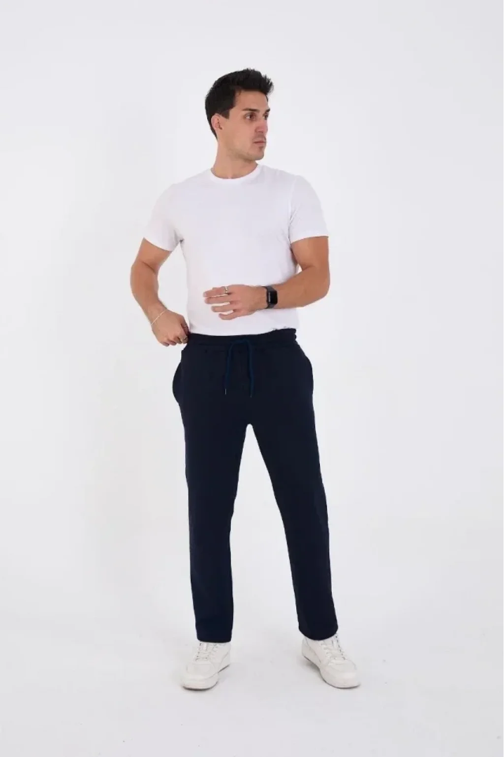 Erkek Üç İplik Basic Eşofman Boru Paça İpli Pantolon - Lacivert
