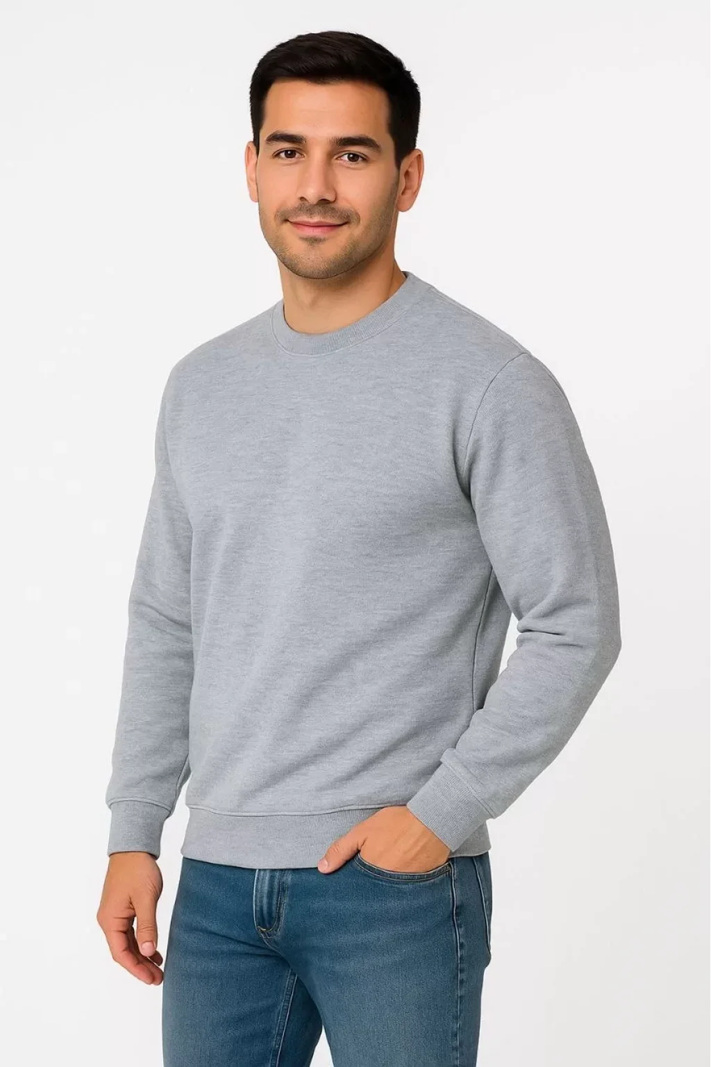Erkek Üç İplik Düz Bisiklet Yaka SweatShirt - Gri