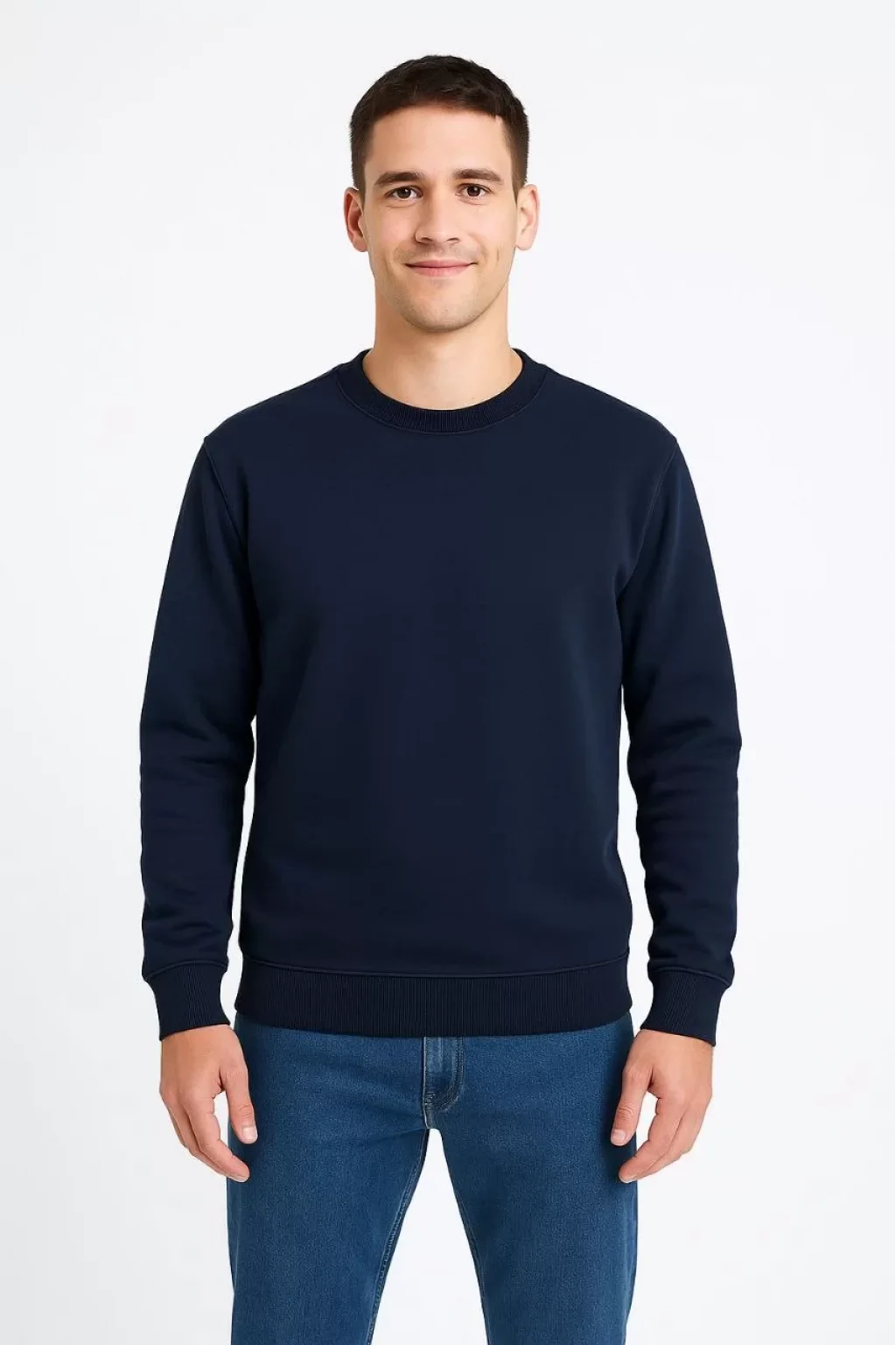 Erkek Üç İplik Düz Bisiklet Yaka SweatShirt - Lacivert