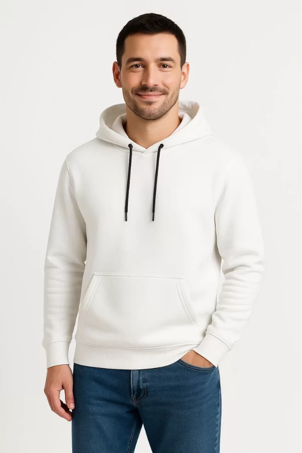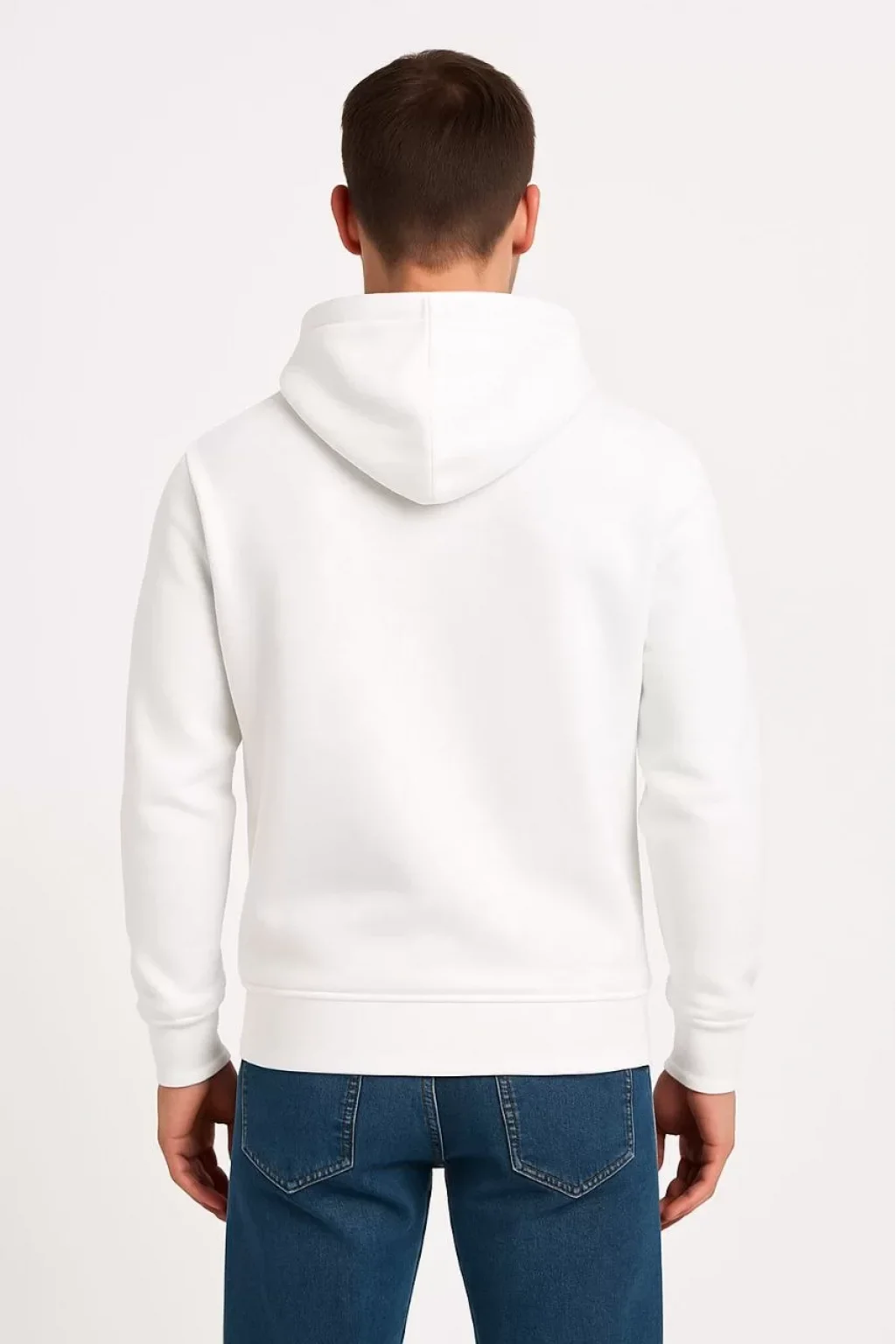 Erkek Üç İplik Kapüşonlu Kanguru Cepli SweatShirt hoodie - Beyaz