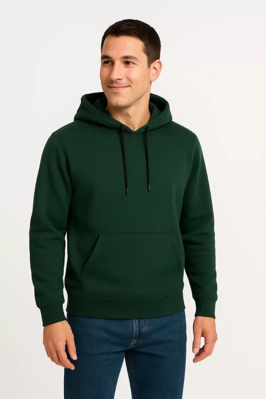 Erkek Üç İplik Kapüşonlu Kanguru Cepli SweatShirt hoodie - Haki