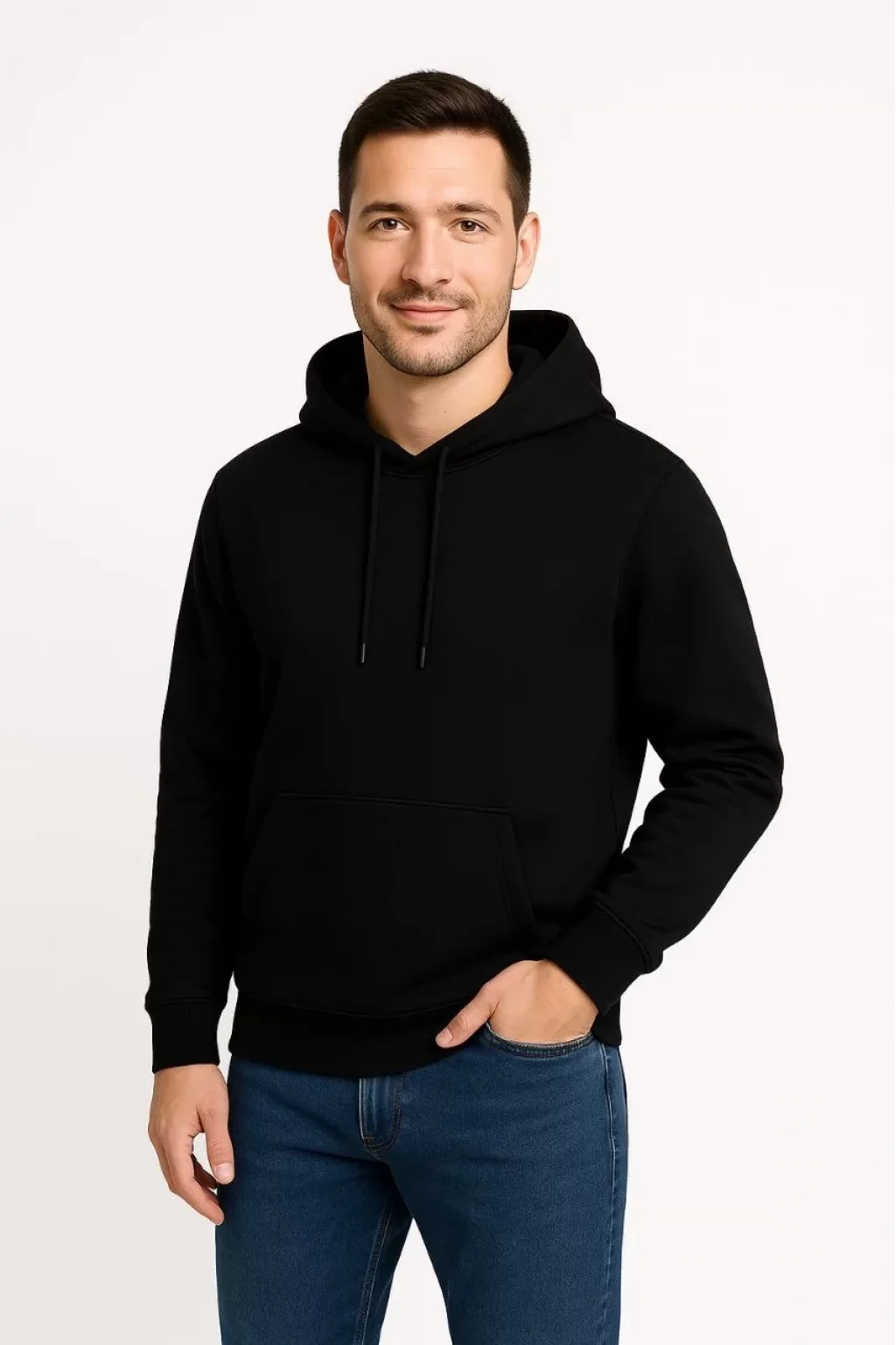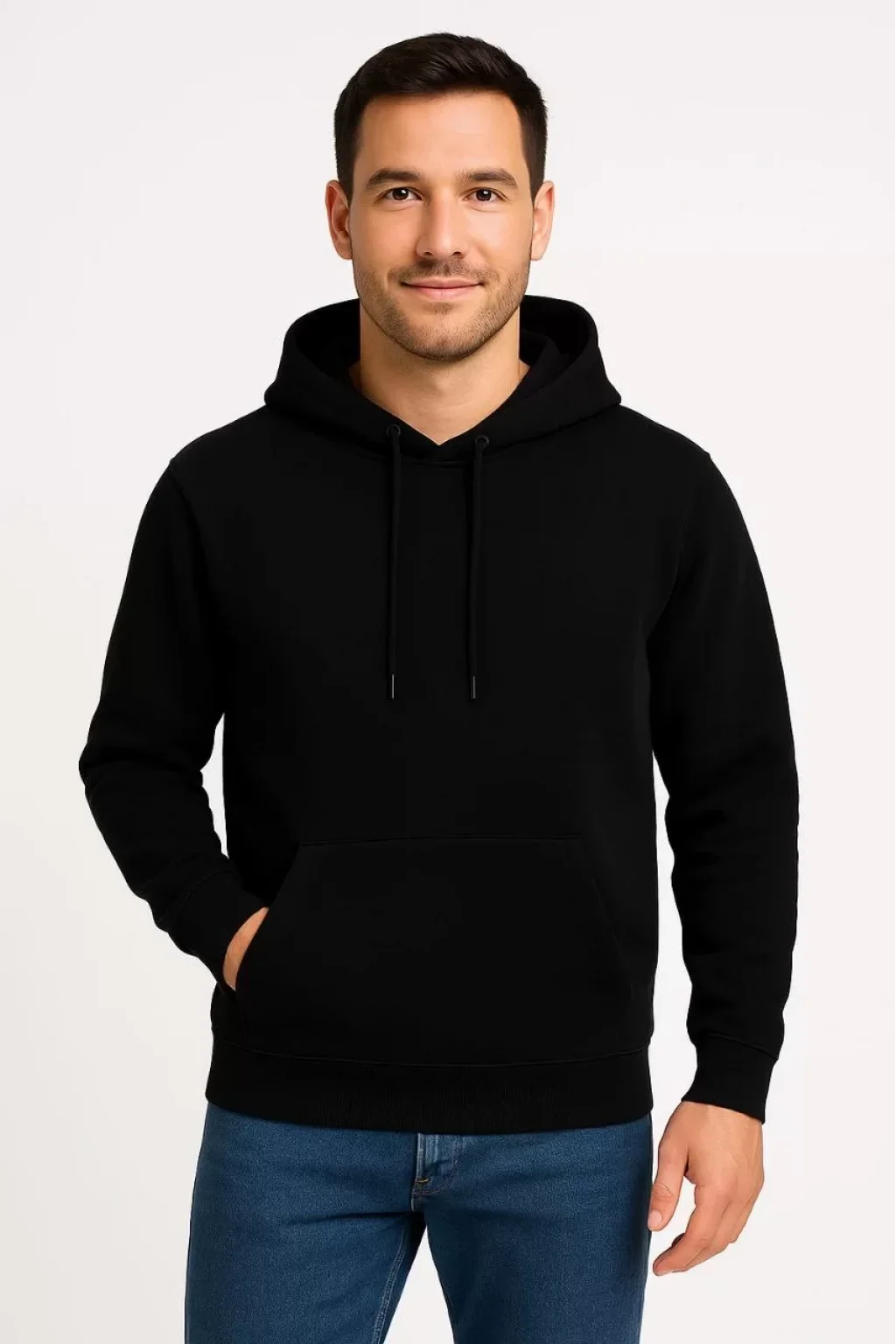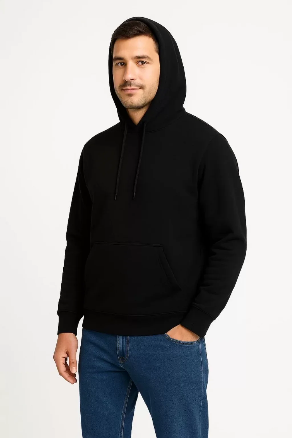Erkek Üç İplik Kapüşonlu Kanguru Cepli SweatShirt hoodie - Siyah