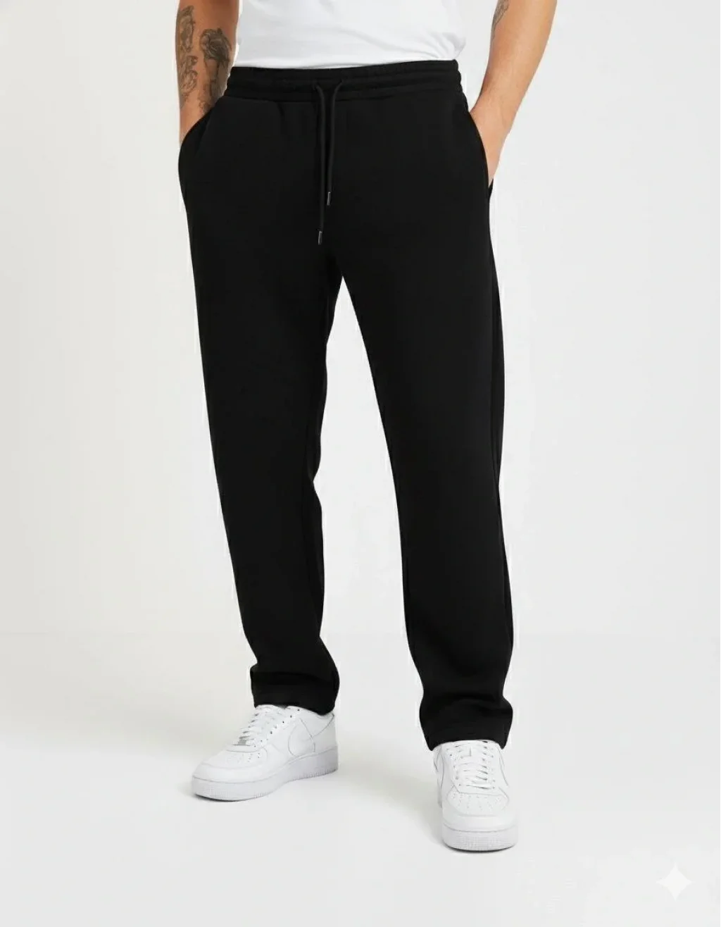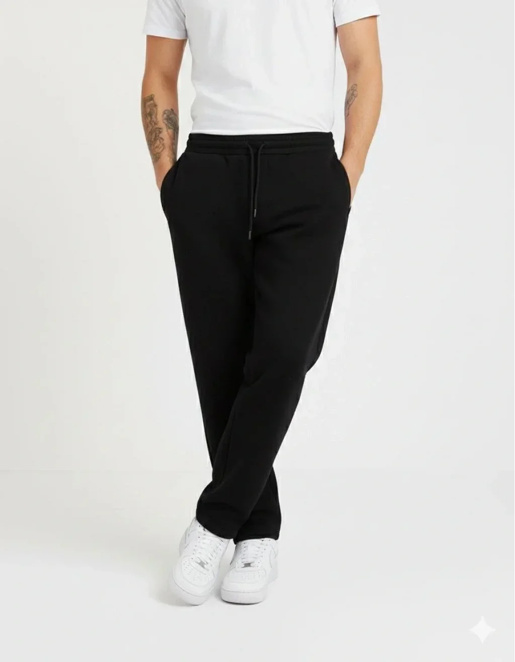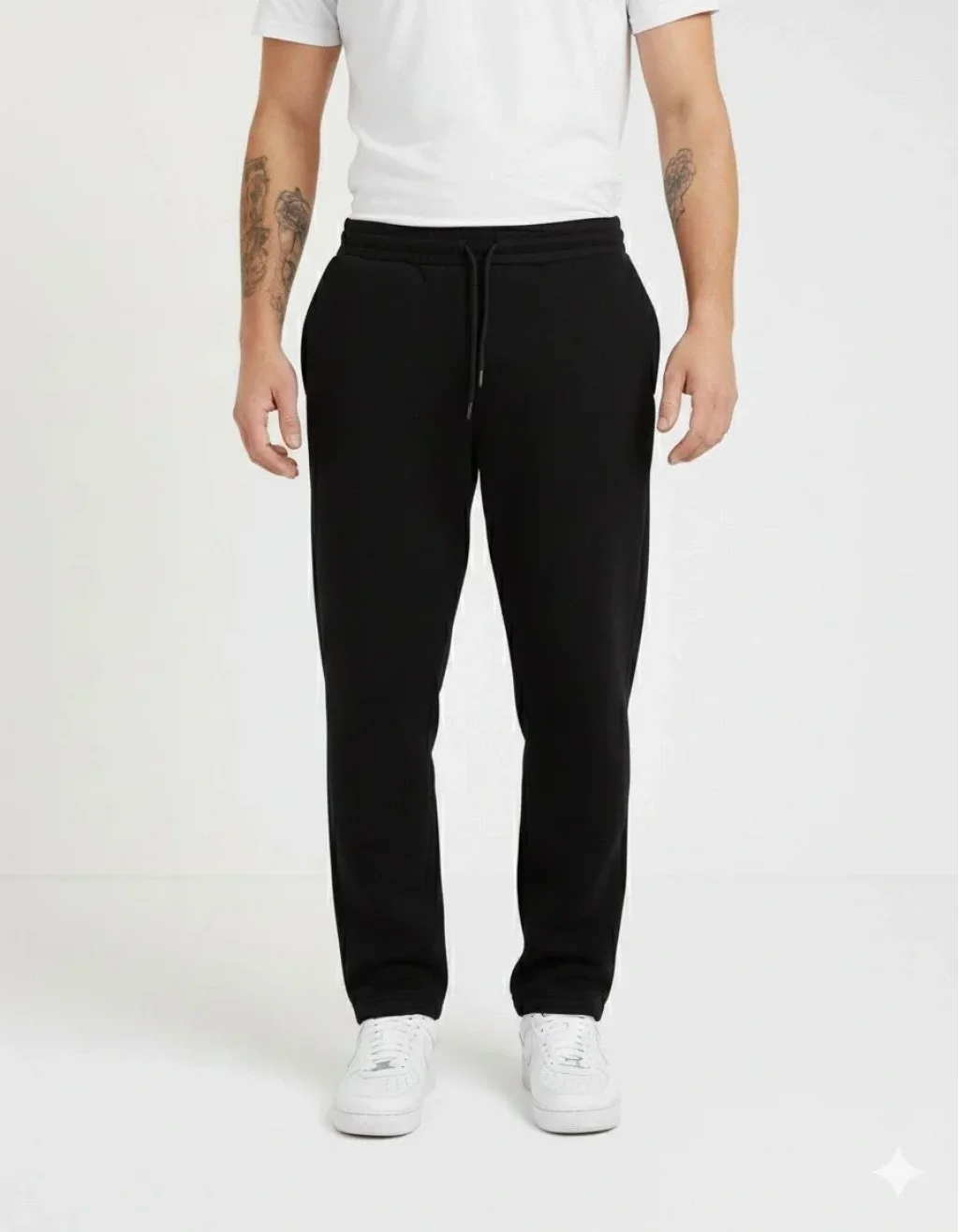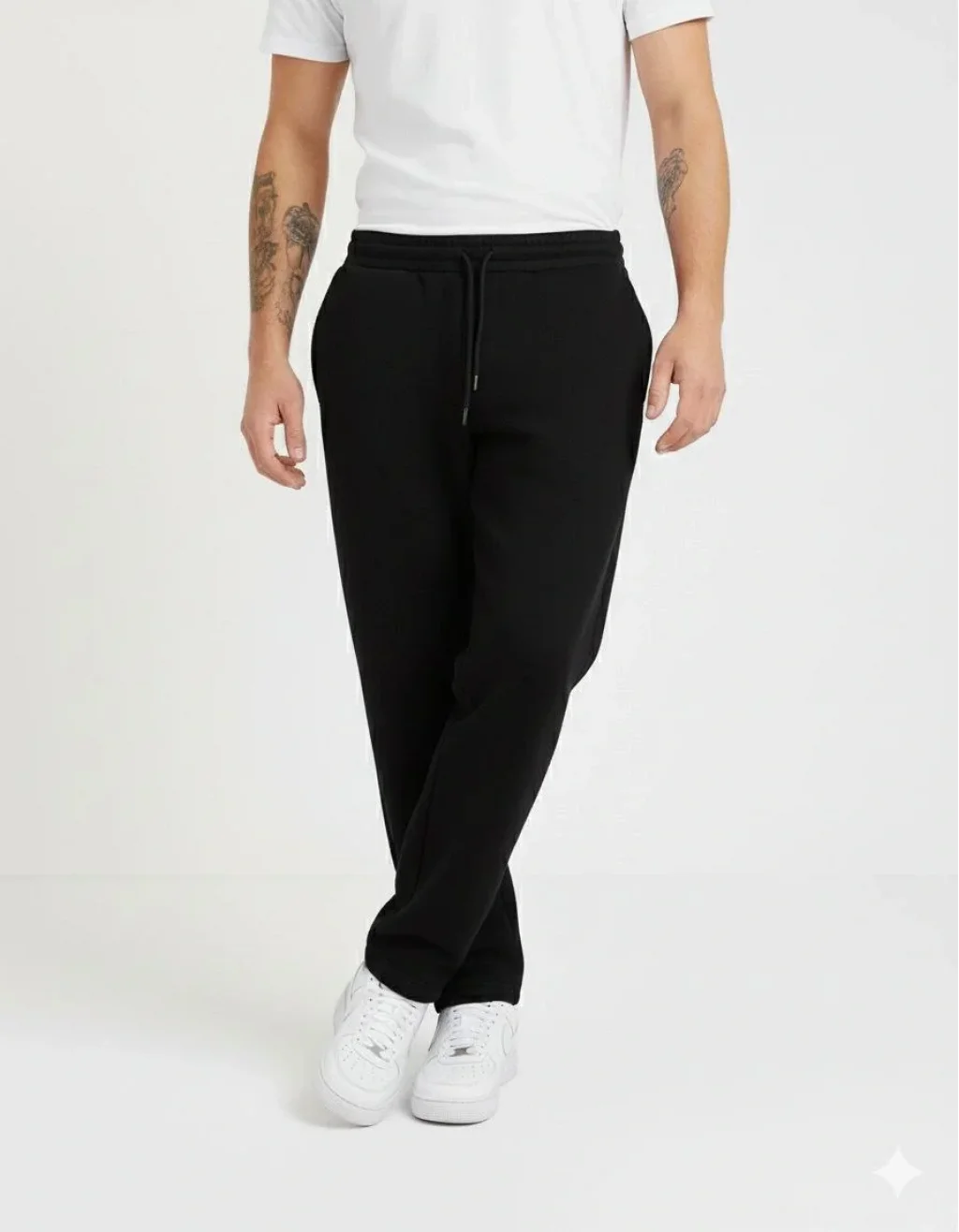 Erkek Üç iplik Kışlık Pamuklu Ovarsize Bağcıklı Düz Paça Cepli Eşofman Altı Spor Rahat Model - Siyah