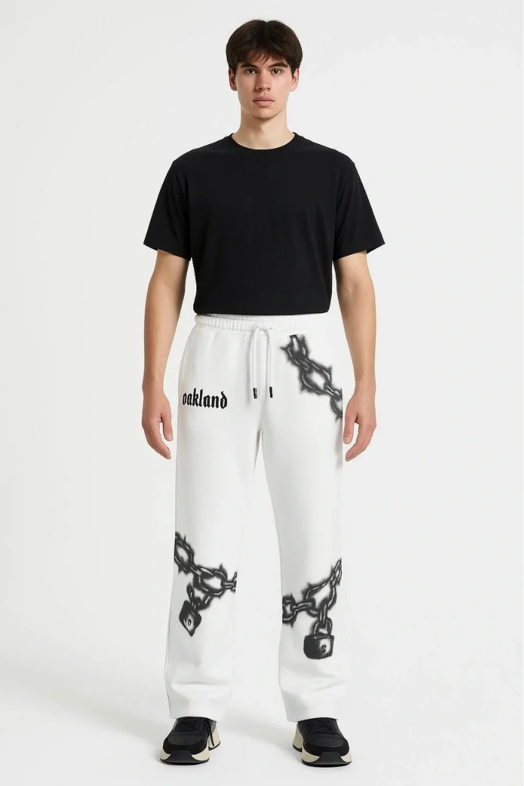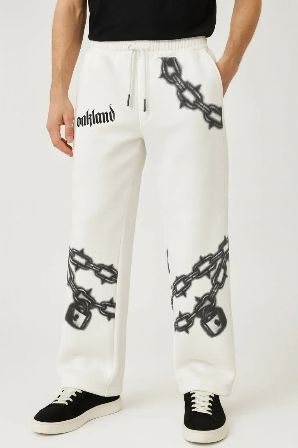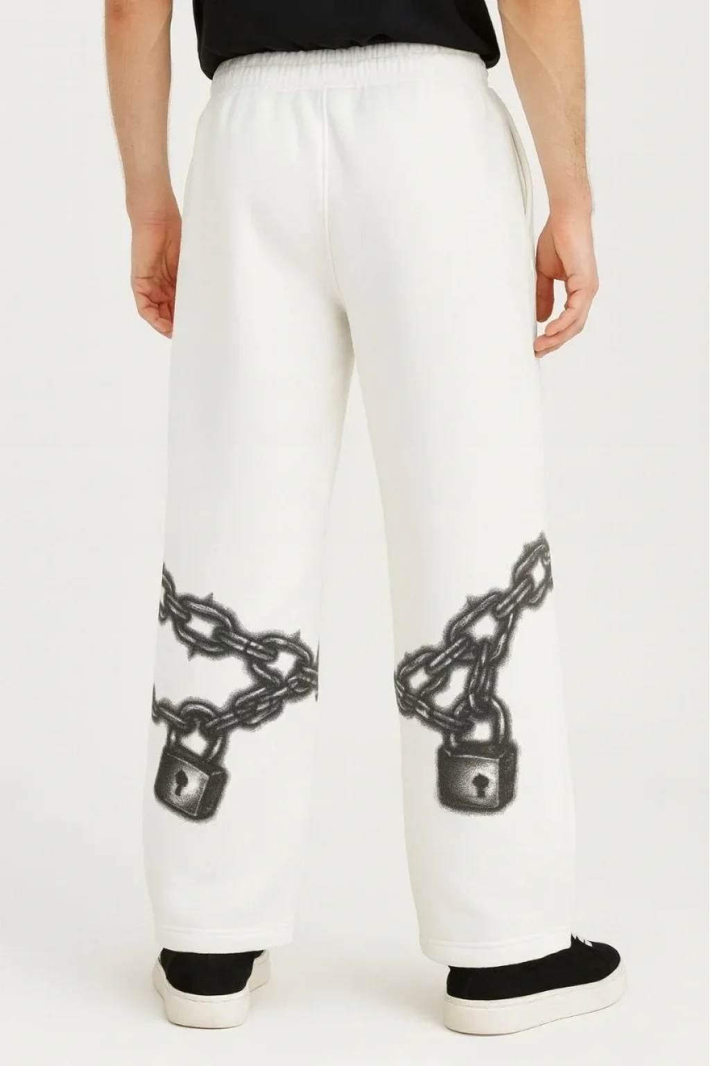 Erkek Üç İplik Pamuklu Baskılı Cepli Jogger Buggy Pantalon Oversize Kalıp - Beyaz