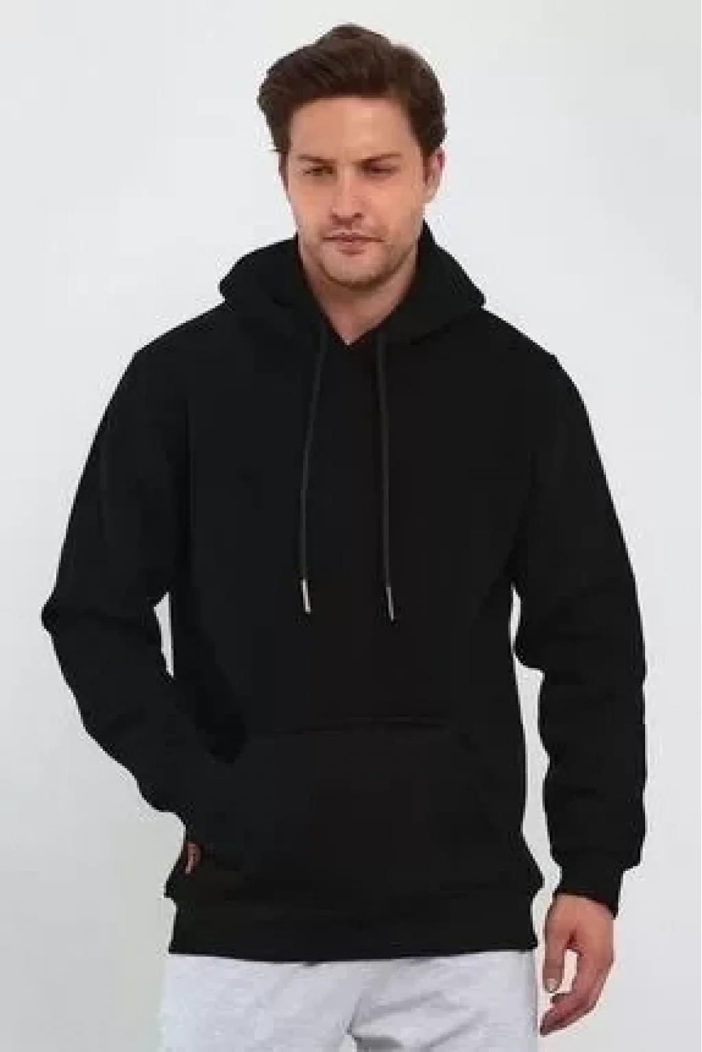 Erkek Uzun Kol Kapşonlu Basic Sweatshirt Hoodie - Siyah