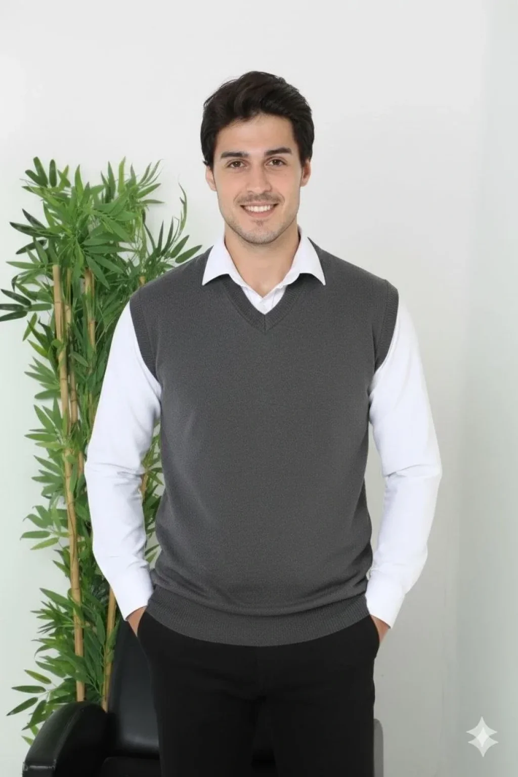 Erkek V Yaka Kolsuz Süveter Triko Kazak yumuşak dokulu Pamuklu ince Dokuma Rahat Regular kalıp - Füme