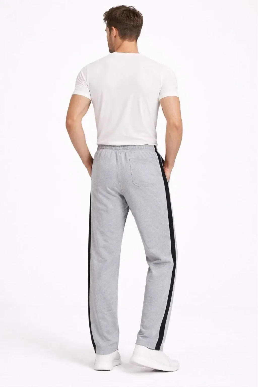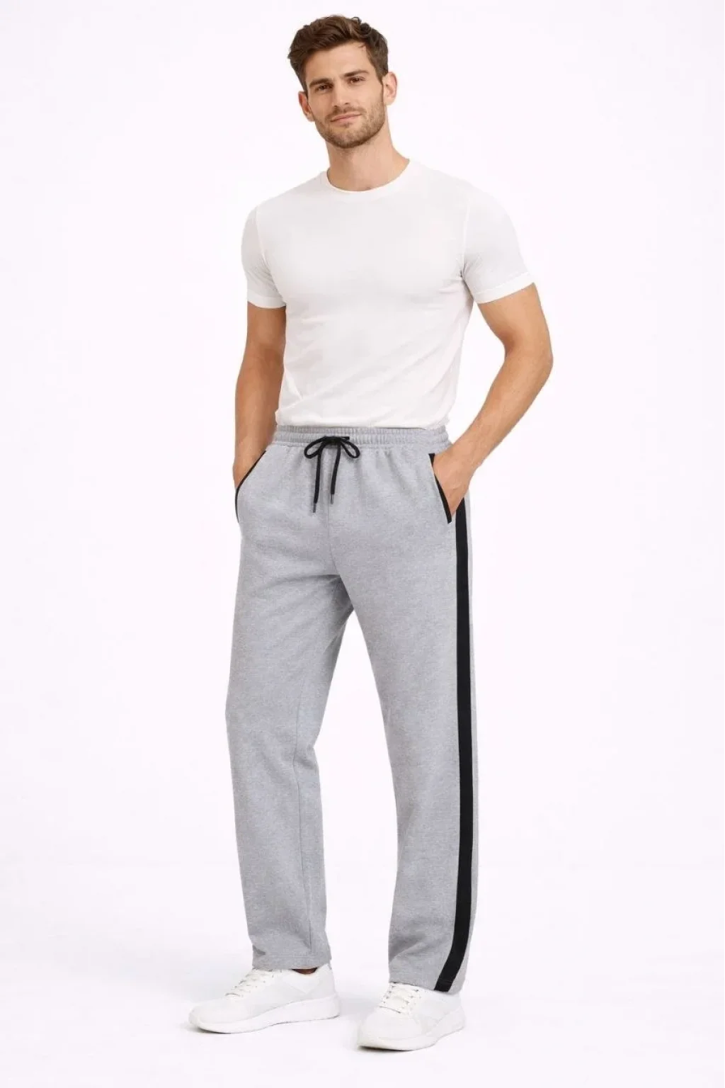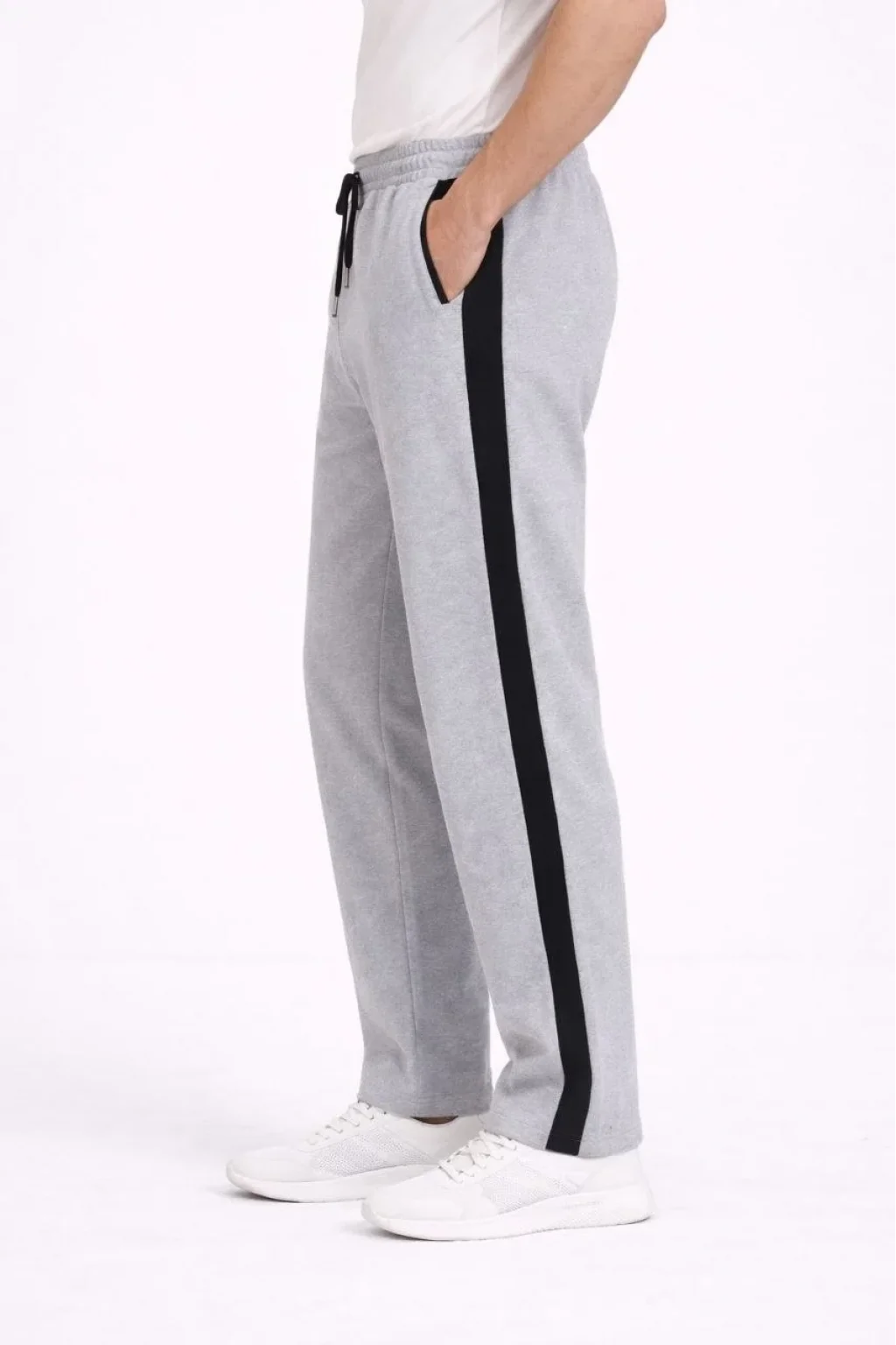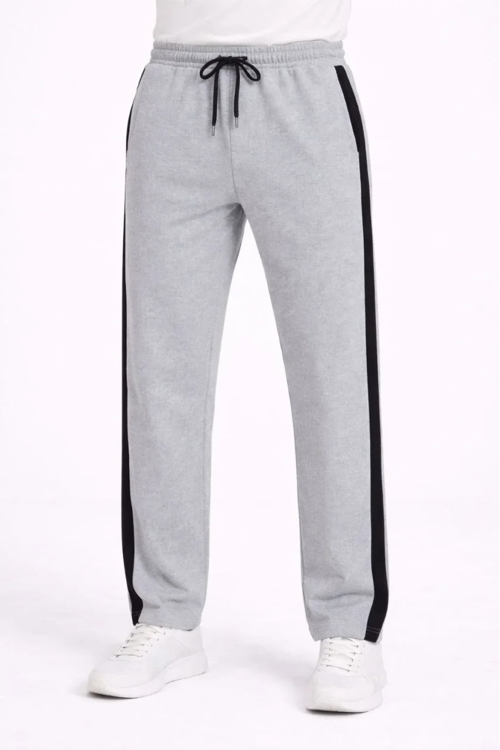 Erkek Yandan Şeritli Boru Paça Eşofman Altı 3 iplik Pamuklu Eşofman - Gri
