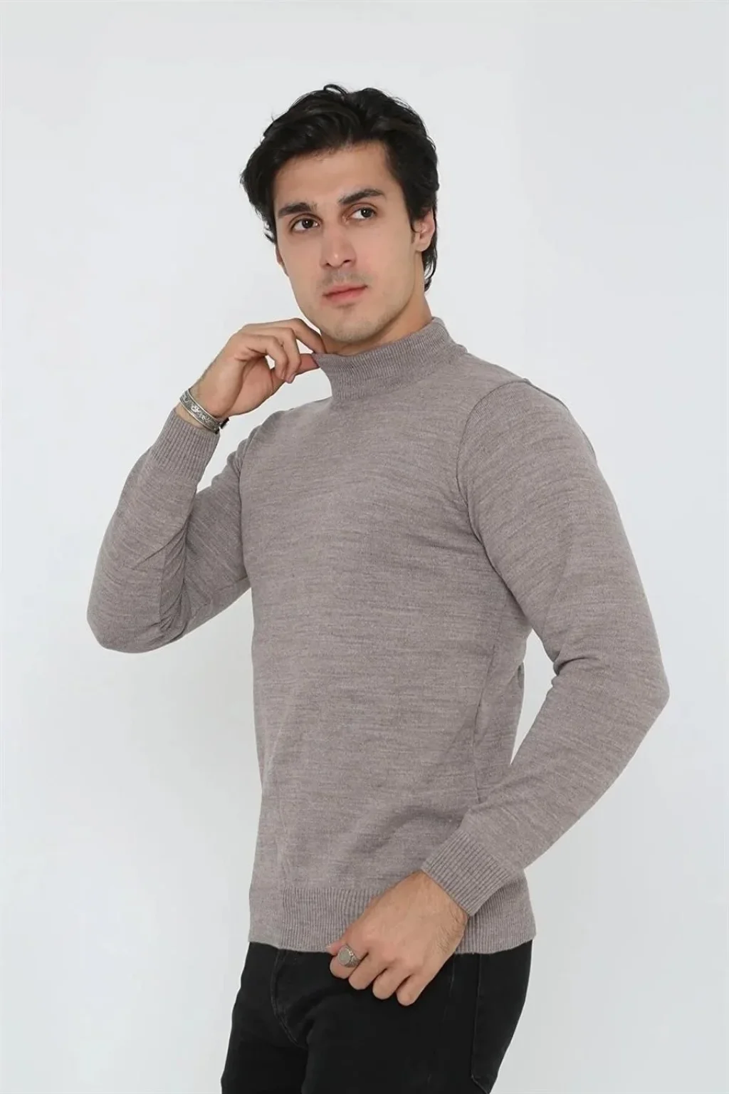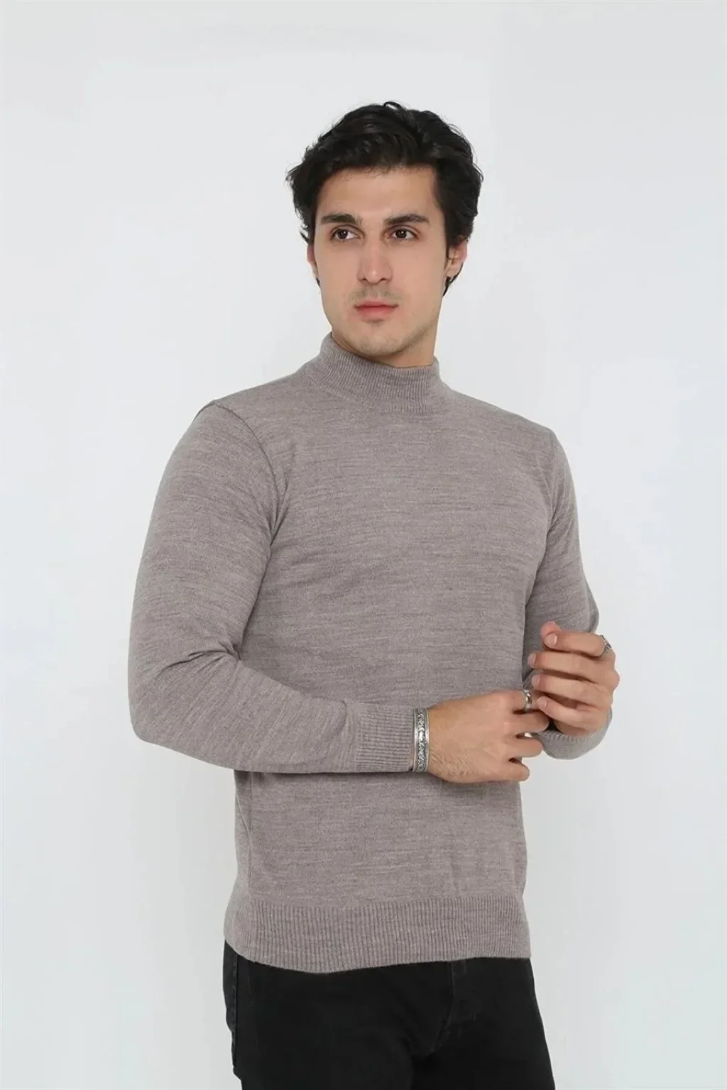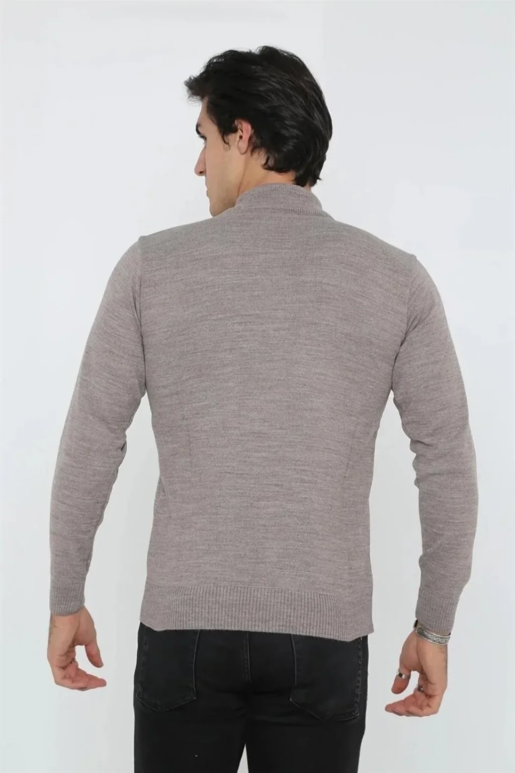Erkek Yarım Balıkçı Yaka Triko Kazak - Açık Kahverengi
