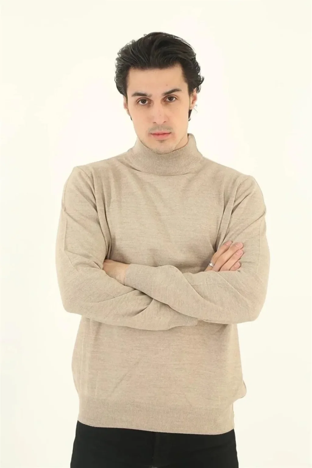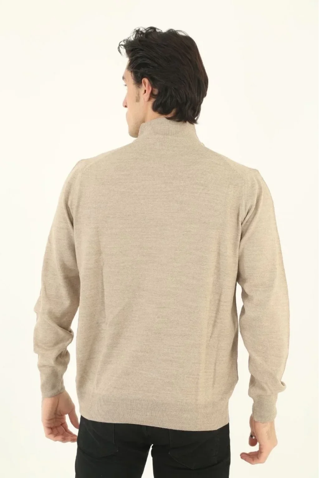 Erkek Yarım Balıkçı Yaka Triko Kazak - Bej