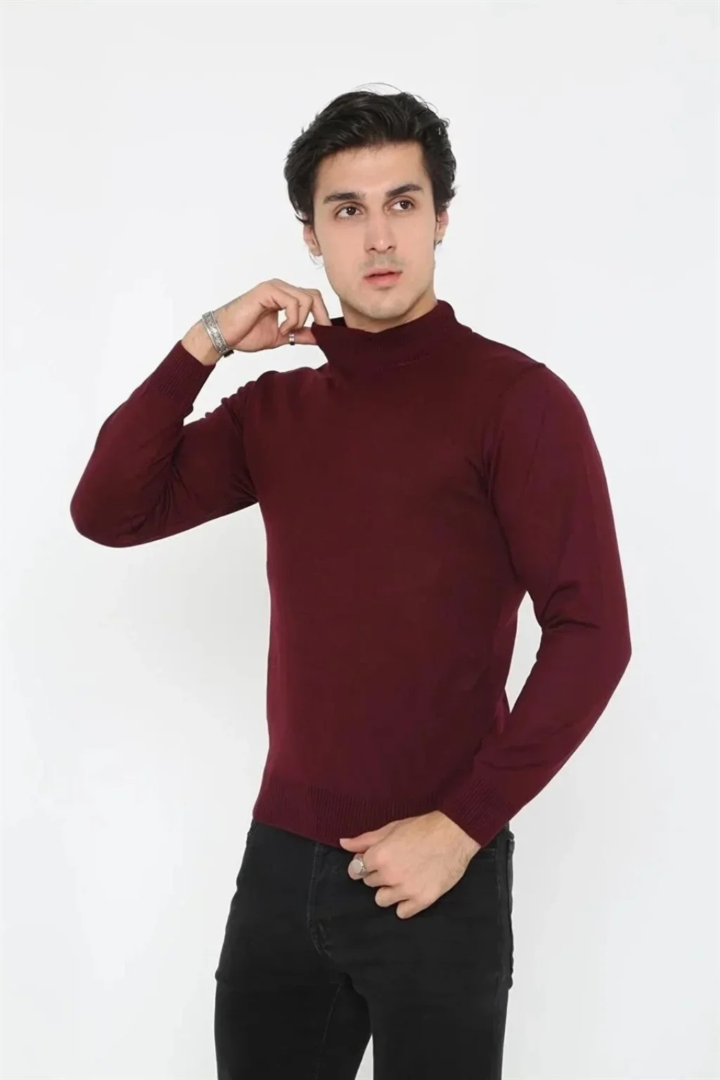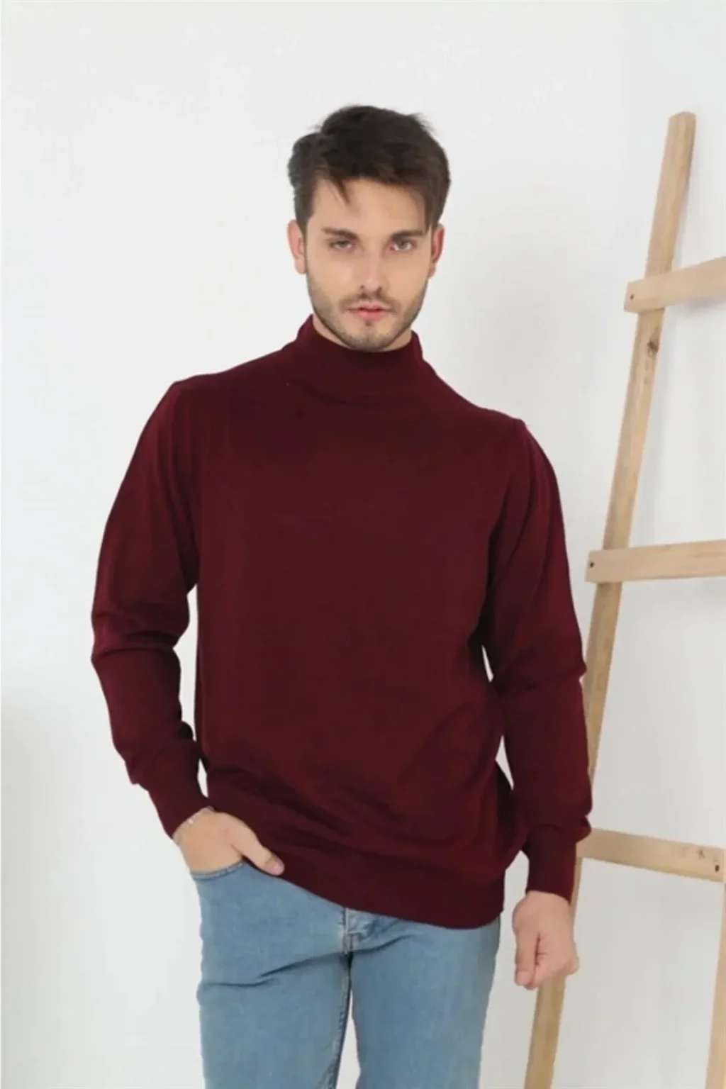 Erkek Yarım Balıkçı Yaka Triko Kazak - Bordo