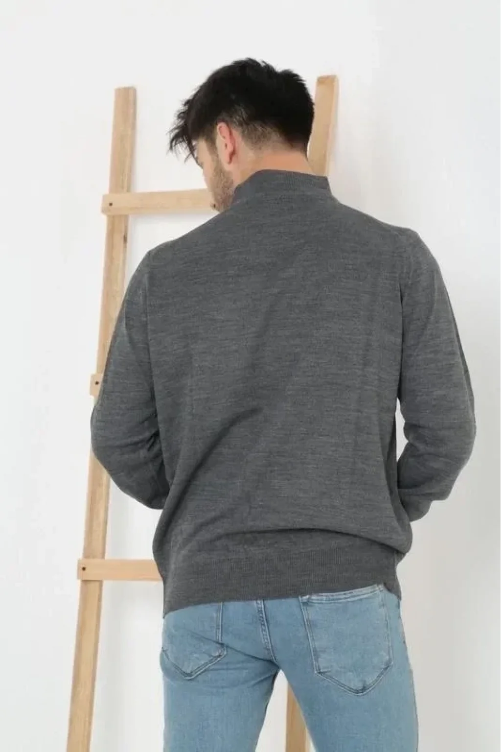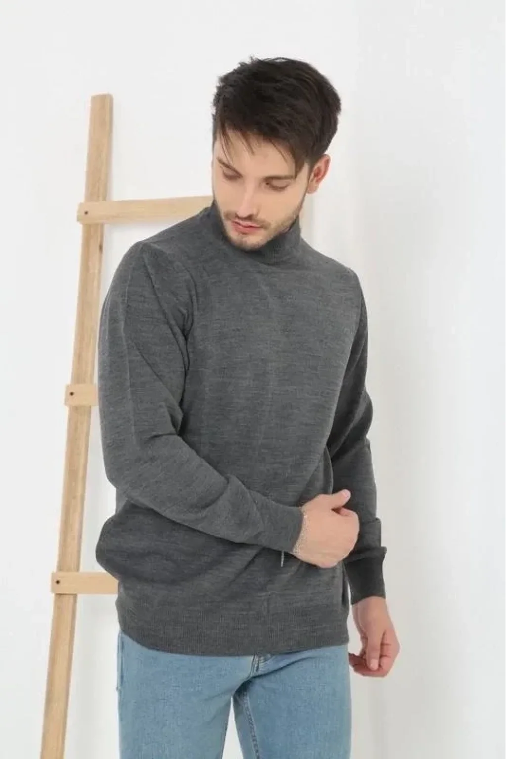 Erkek Yarım Balıkçı Yaka Triko Kazak - Füme