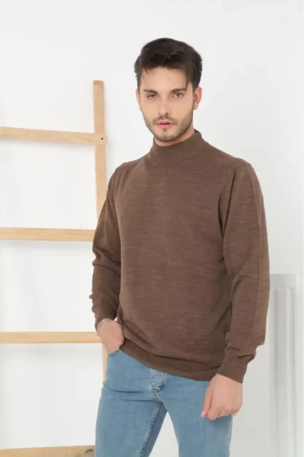Erkek Yarım Balıkçı Yaka Triko Kazak - Kahve