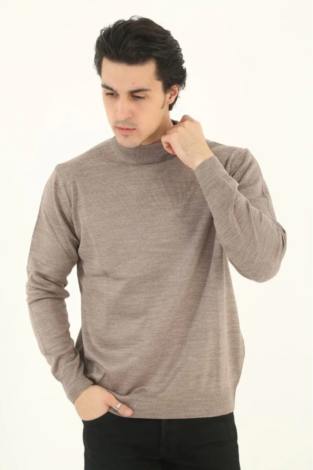 Erkek Yarım Balıkçı Yaka Triko Kazak - Vizon