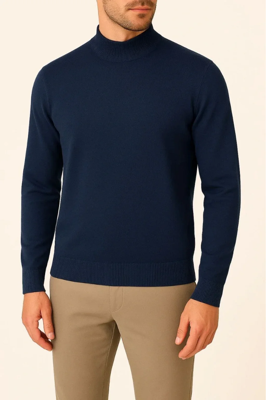 Erkek Yarım Boğaz Triko Kazak yumuşak dokulu Pamuklu ince Dokuma, uzun kollu Rahat Regular kalıp - Lacivert