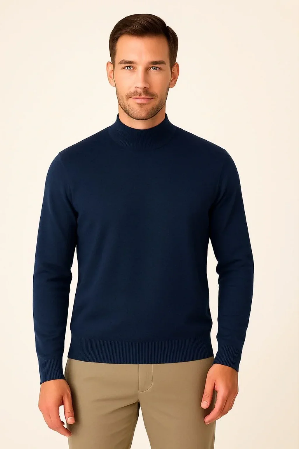 Erkek Yarım Boğaz Triko Kazak yumuşak dokulu Pamuklu ince Dokuma, uzun kollu Rahat Regular kalıp - Lacivert
