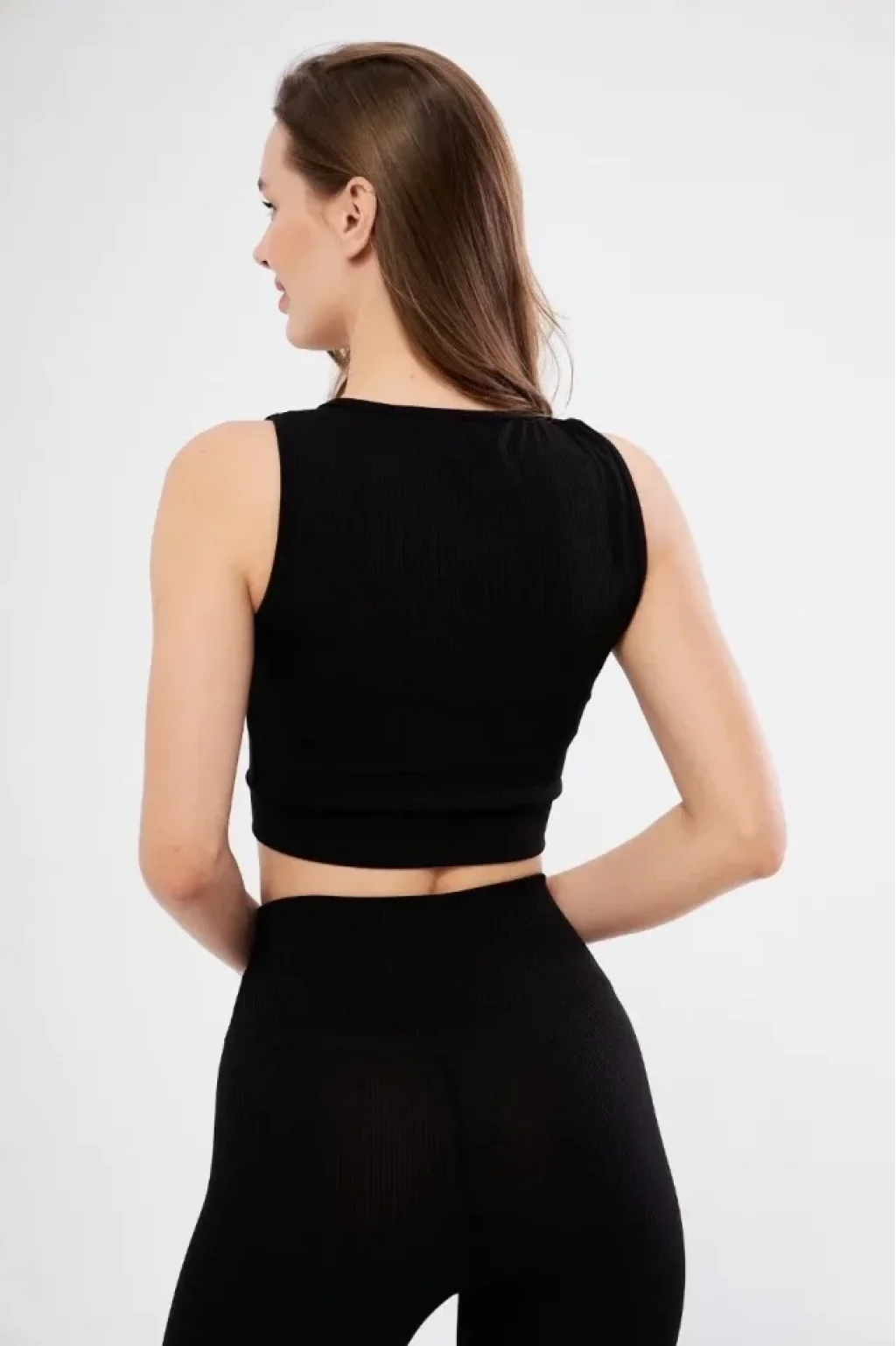 Fitilli Baskılı Crop - Siyah