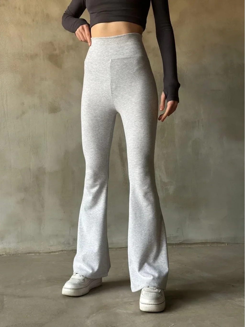 İspanyol Paça Yüksek Bel Tayt - Gri