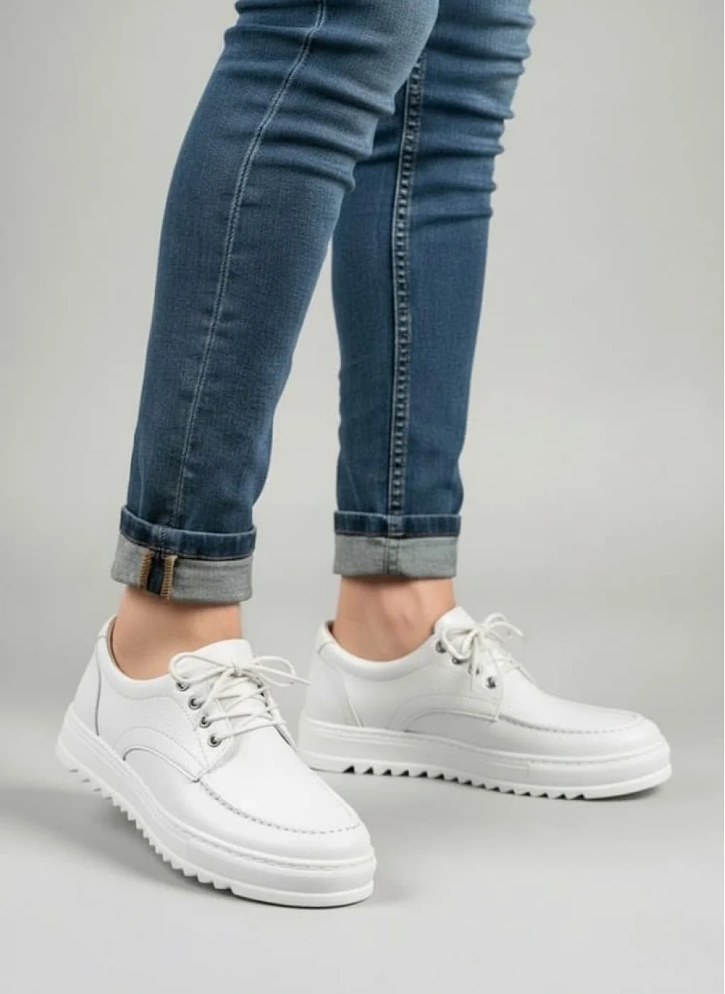 JY-T12x Arts Bağcıklı Cilt Erkek Günlük Spor Klasik Ayakkabı CBT - Beyaz