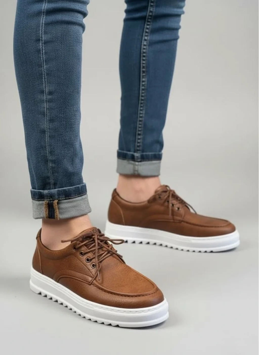 JY-T12x Arts Bağcıklı Cilt Erkek Günlük Spor Klasik Ayakkabı CBT - Taba