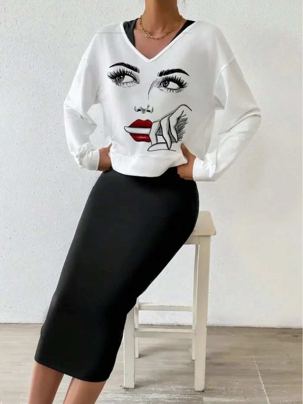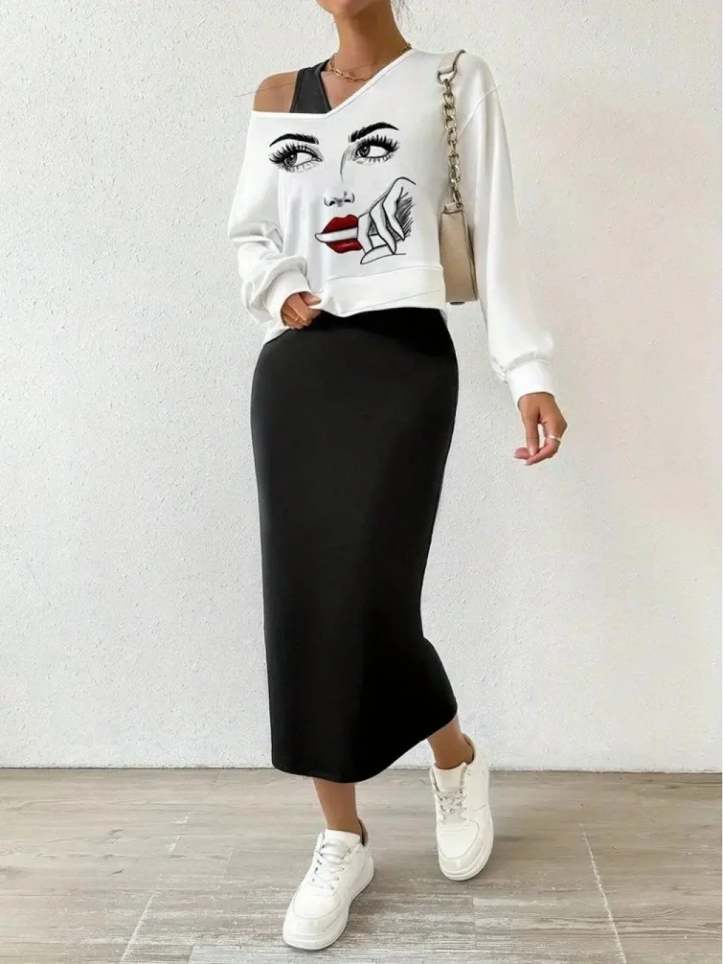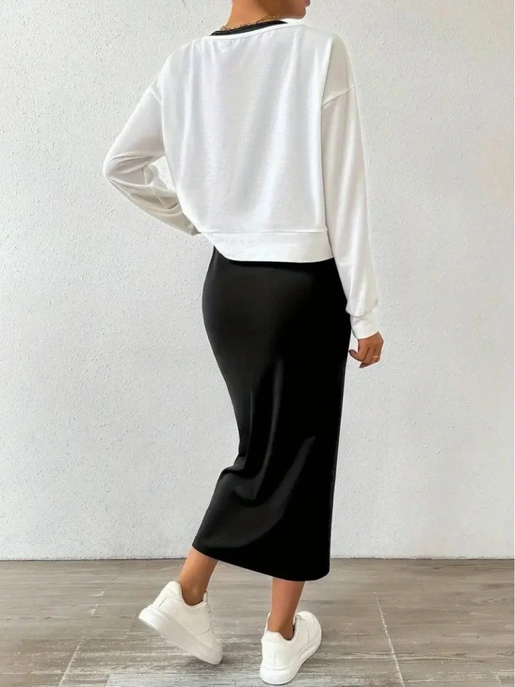 Kadın Askılı Yuvarlak Yaka Viskon Iki Iplik Elbise Ve V Yakalı Bluz Ikili Takım
