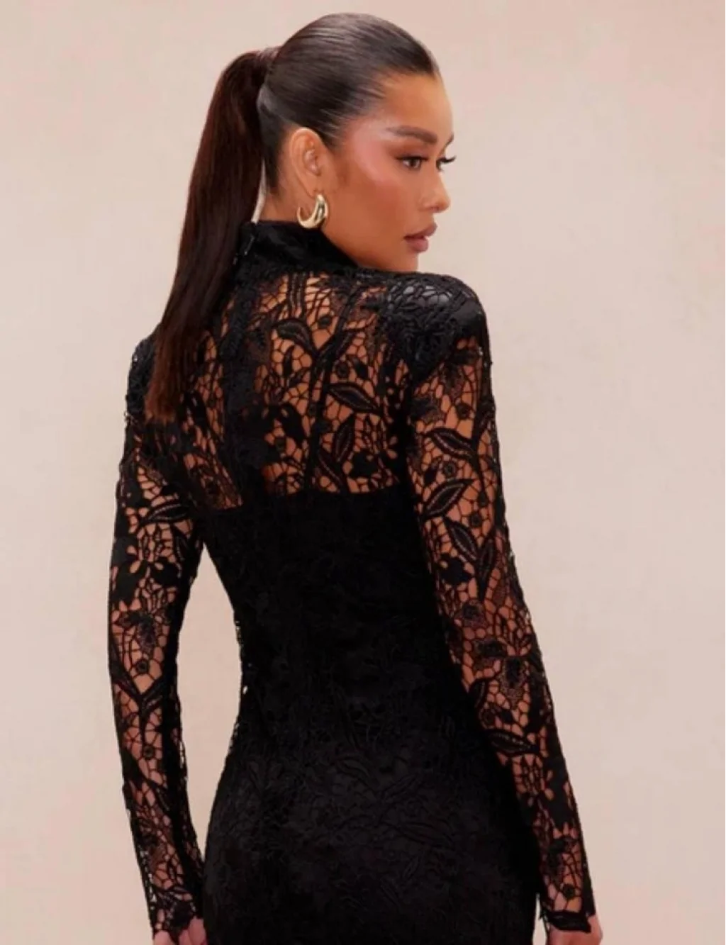 Kadın Balıkçı Yaka Full Dantel Güpür Mini Elbise